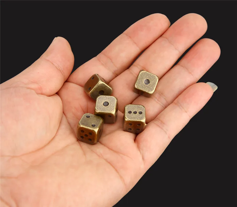 Металлические игральные кости 5 шт.компл. 13*13 мм, цвет золотосеребромедь, цвет Веселые кости, шестисторонний декоративный Настольный игровой аксессуар