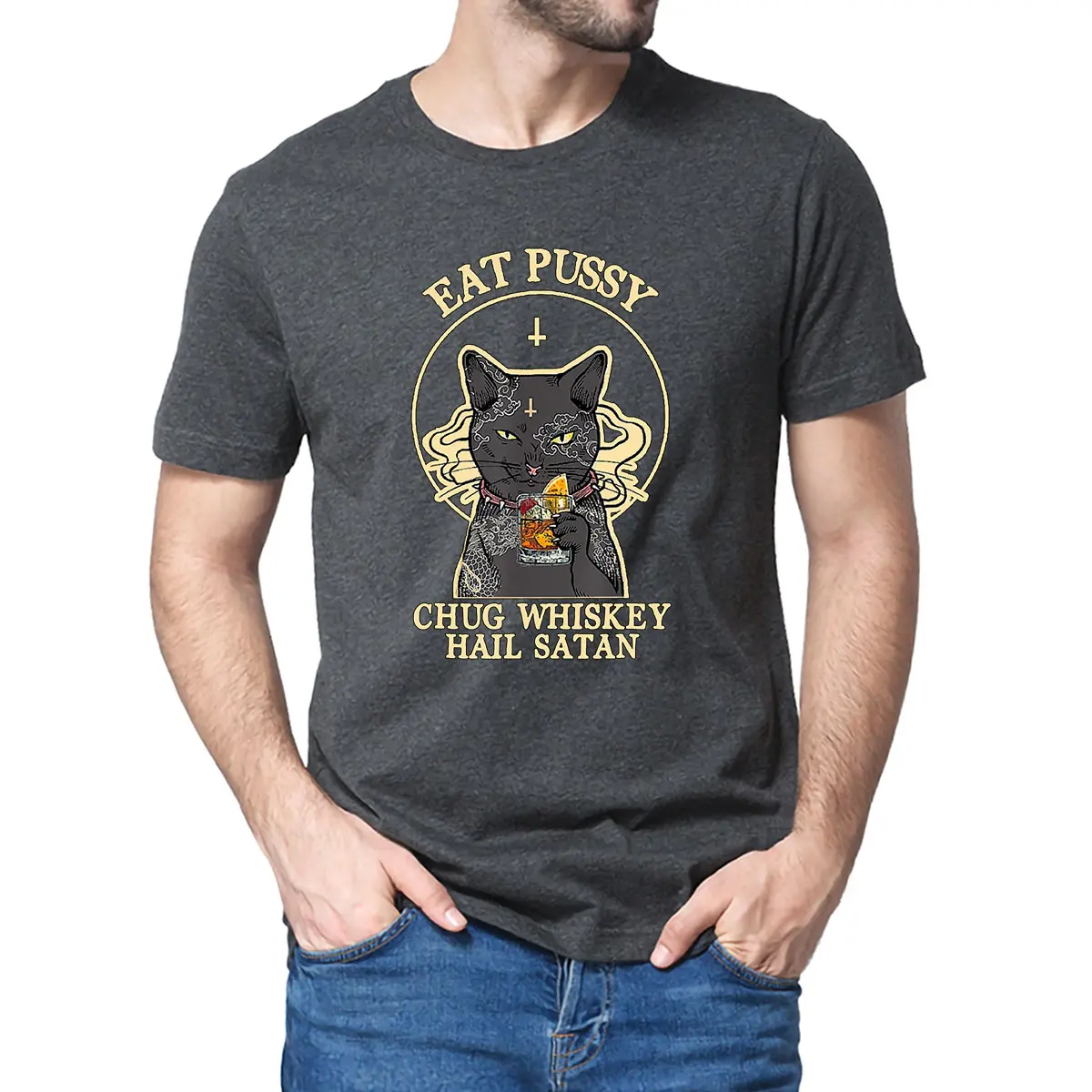 Забавная Мужская футболка из 100% хлопка, черная кошка, пью, не хру...