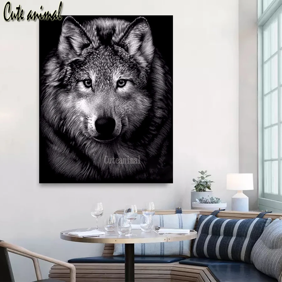 5D DIY алмазная живопись волк черно-белые животные Алмазная вышивка камни в форме ромба круглое сверло, смолы гостиная украшения 2021