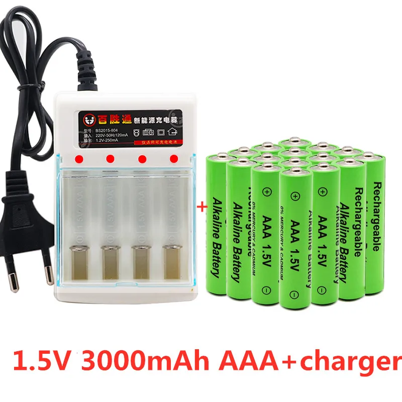 2021 партии AAA 3000 мАч, Батарея 1,5 V щелочные батареи AAA перезаряжаемый аккумулятор Батарея для удаленного Управление игрушка светильник батарея, батарея + зарядное устройство