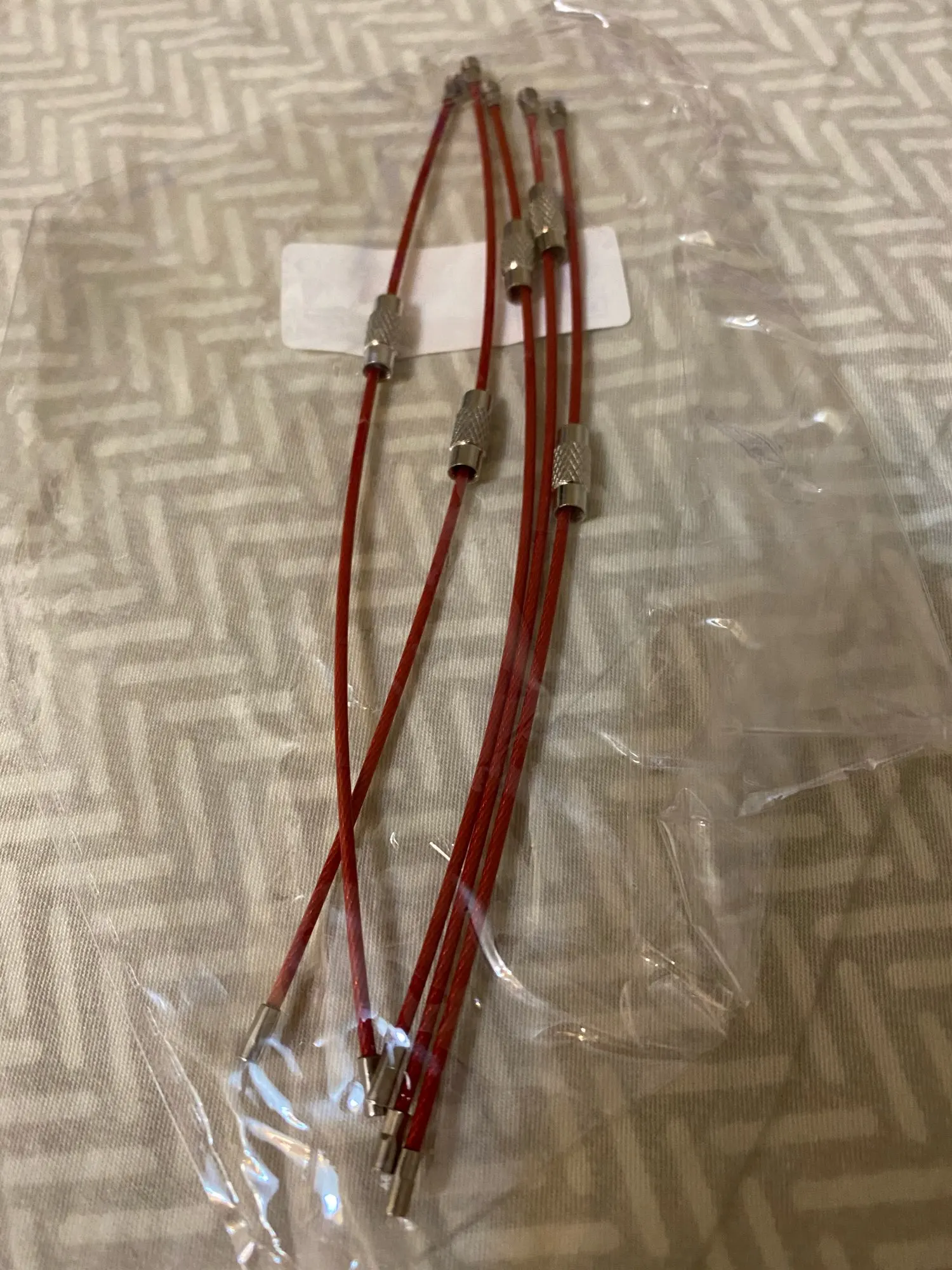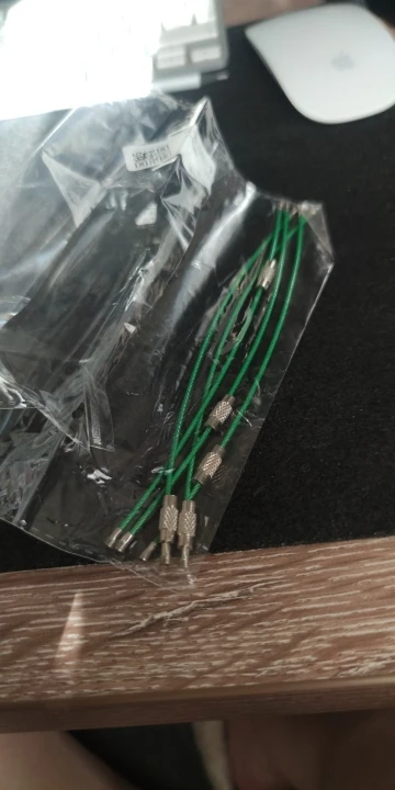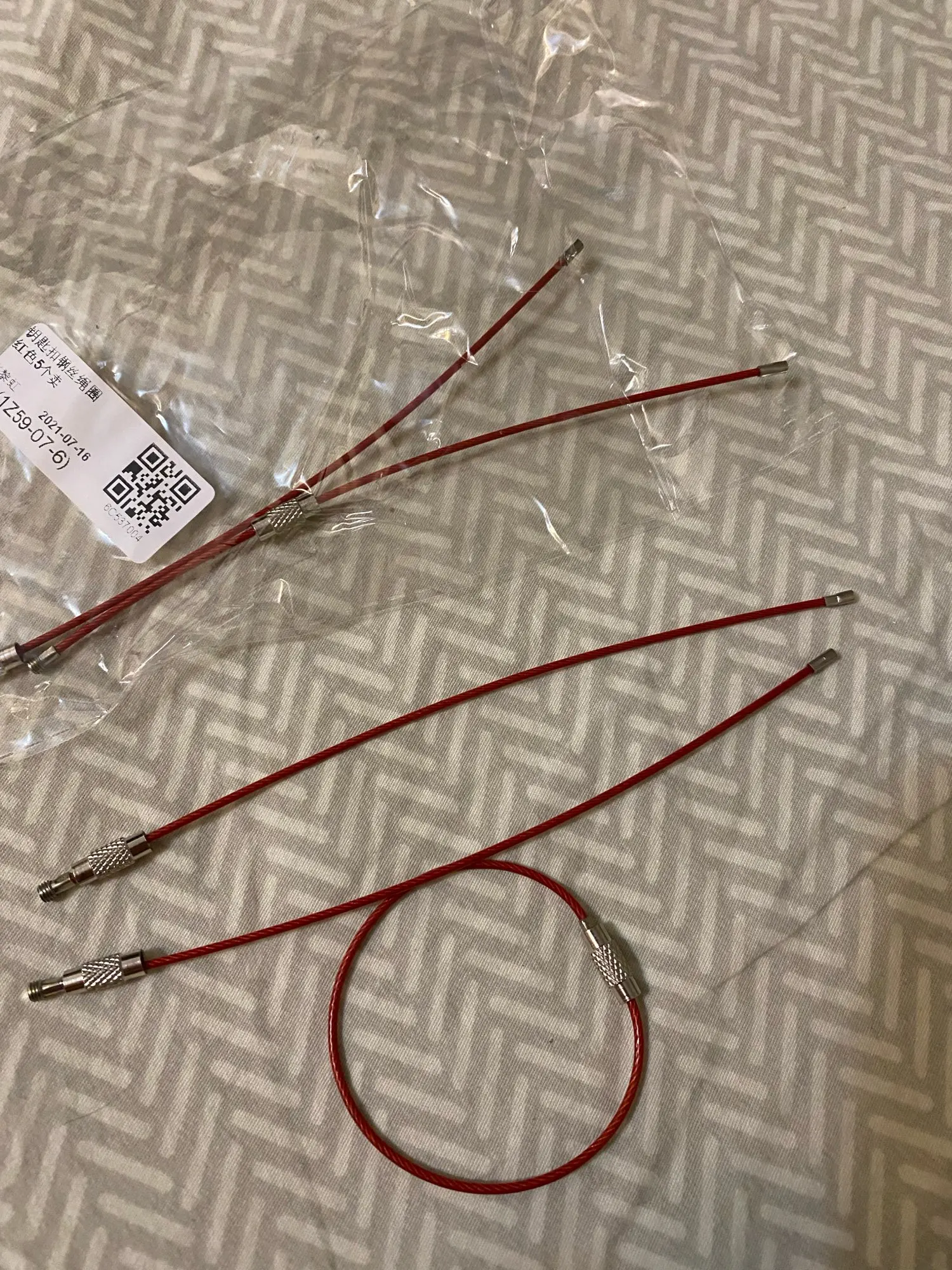 Доставка заняла 15 дней после объединения с двумя другими посылками и была доставлена в почтамат Сбер Логистика. Тросики очень тонкие - всего лишь 1,45 мм вместе с оплеткой. При застегивании образуют круг в 5 см.