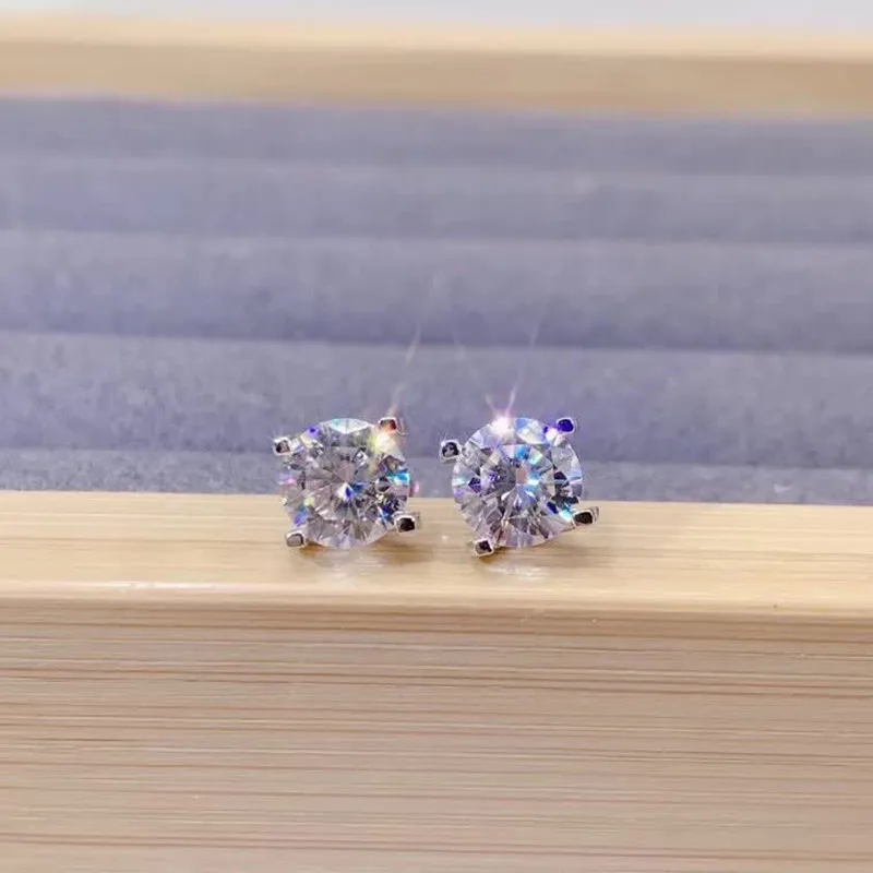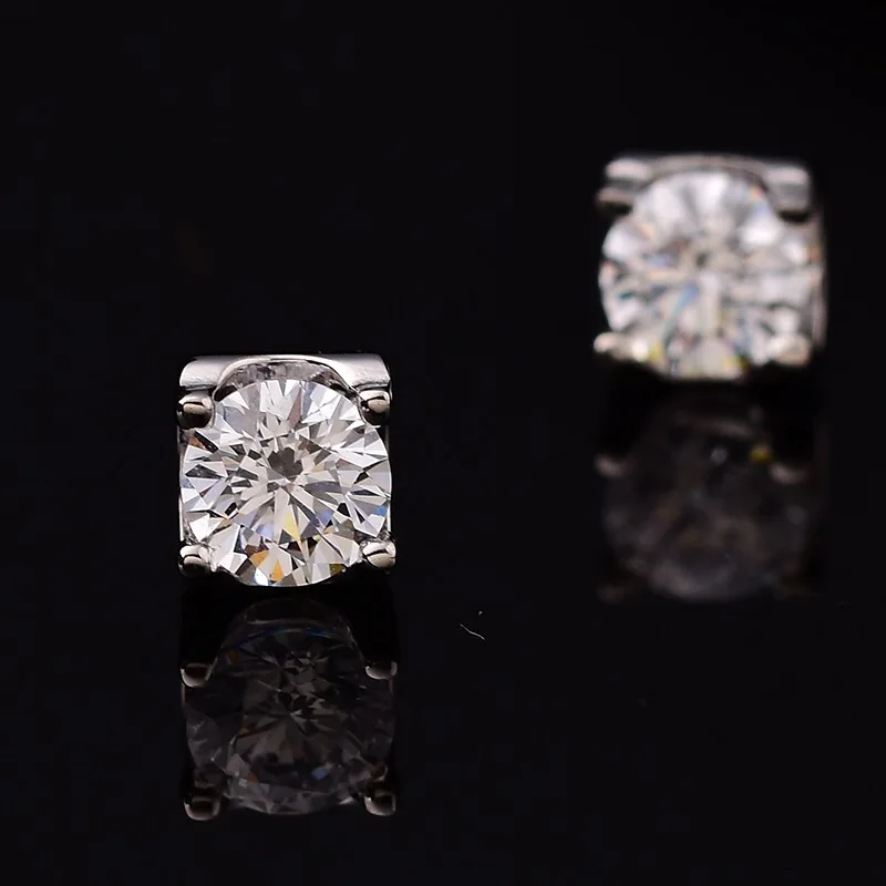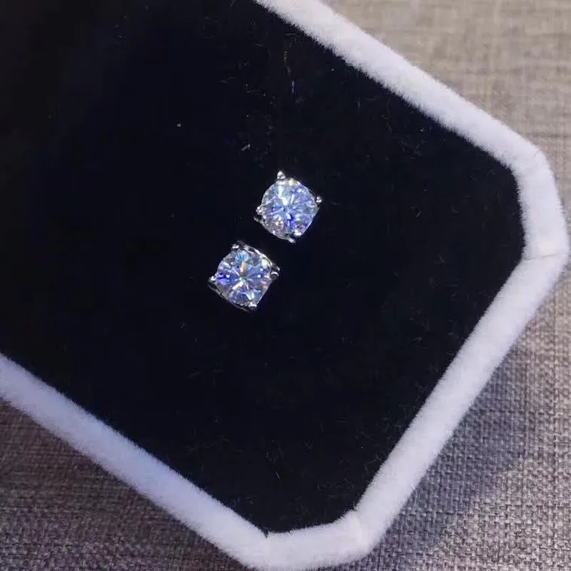 Материал: настоящий Муассанит Форма: круглая Цвет: Белый D Цвет Размер: 0.5ct(5 мм),1ct (6,5 мм), цена за одну пару Металл: Стерлинговое Серебро S925 пробы, покрытое белым золотом Каждая штука moissanite с GRA сертификатом и 100% бриллиантом