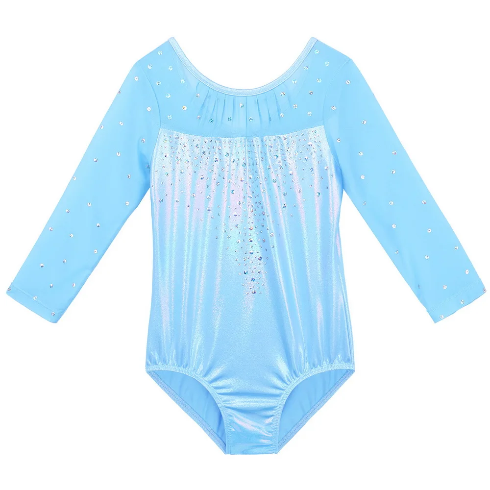 Купальник BAOHULU для гимнастики, с блестками и градиентными синими балетными вставками
