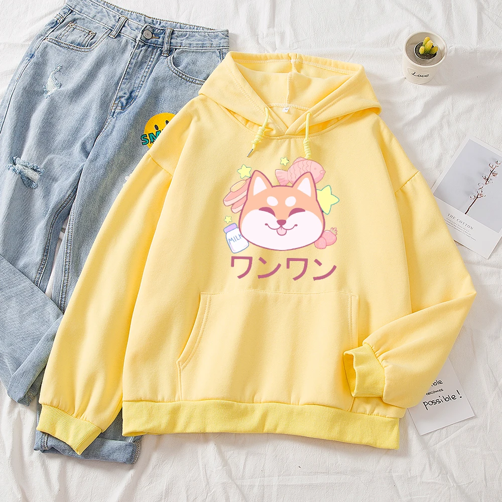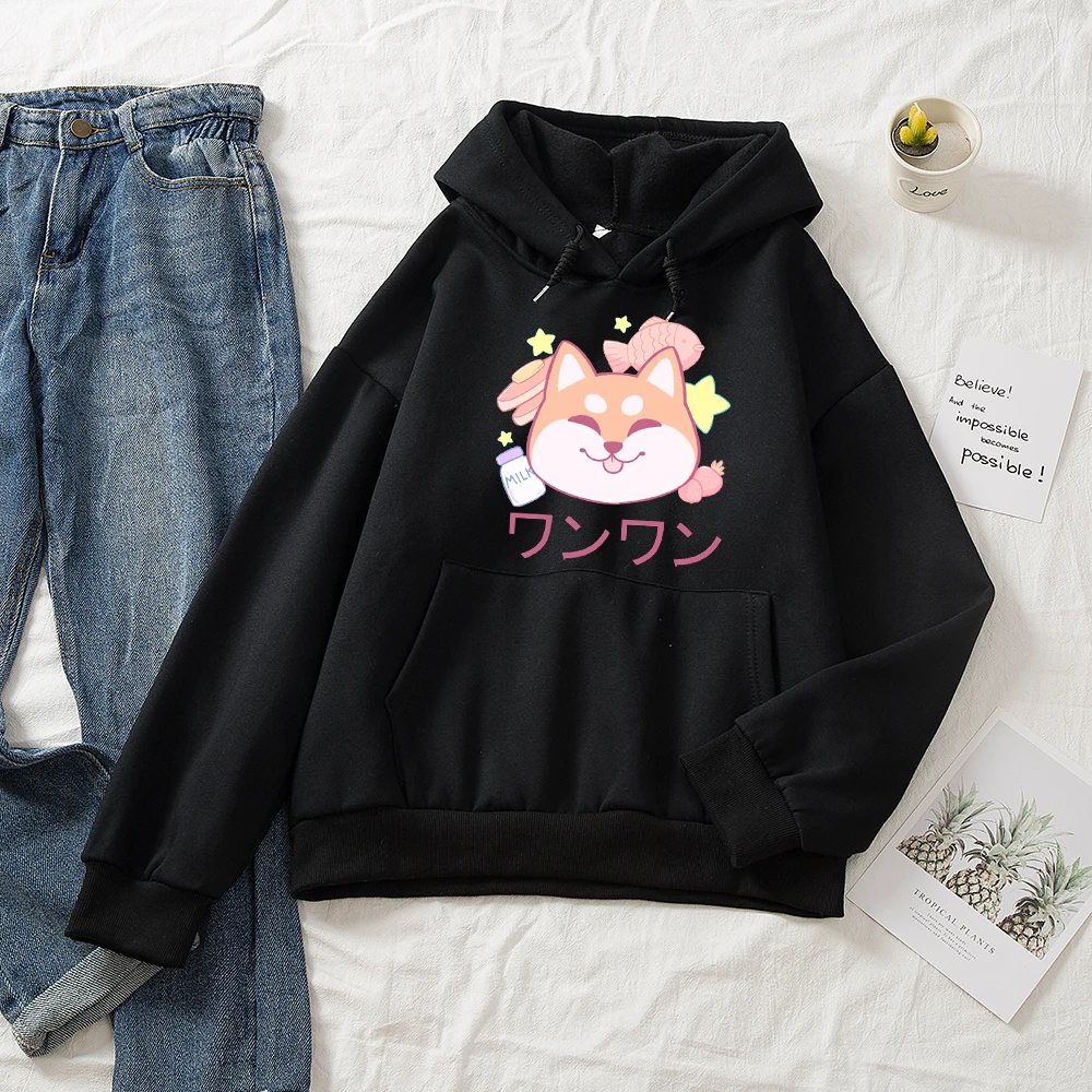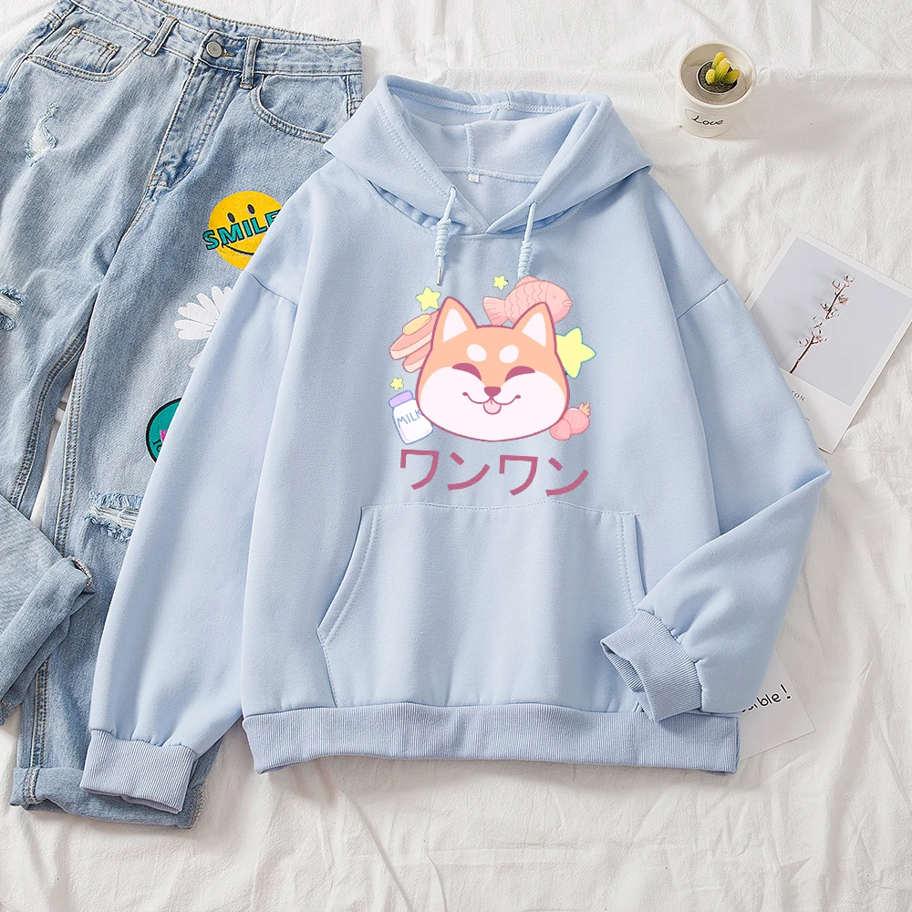 Кавайные эстетические толстовки, Женская толстовка большого размера для девочек, зимняя теплая плотная Толстовка в японском стиле, пуловер с капюшоном и длинными рукавами, худи