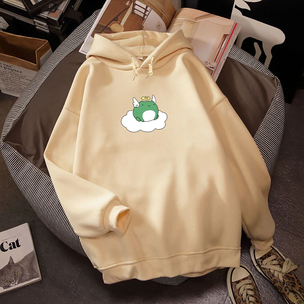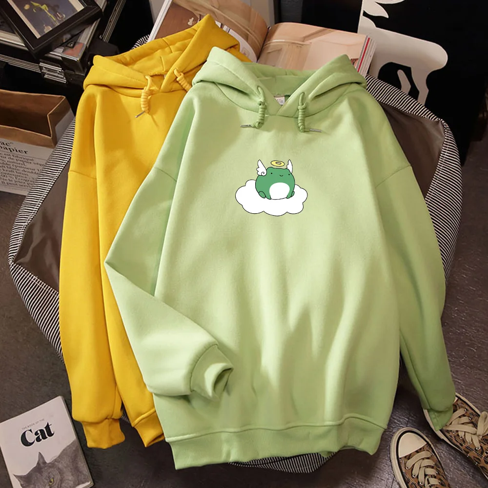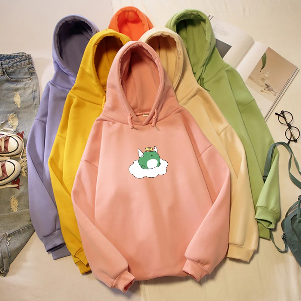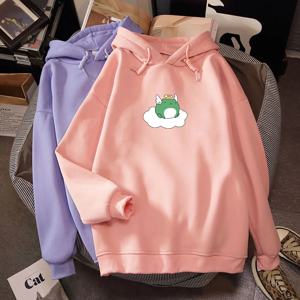 Зимняя забавная Толстовка большого размера с ангелом, лягушкой, женские и мужские толстовки, теплый пуловер с капюшоном в стиле Харадзюку, розовый женский пуловер с кулиской в Корейском стиле