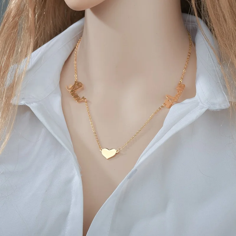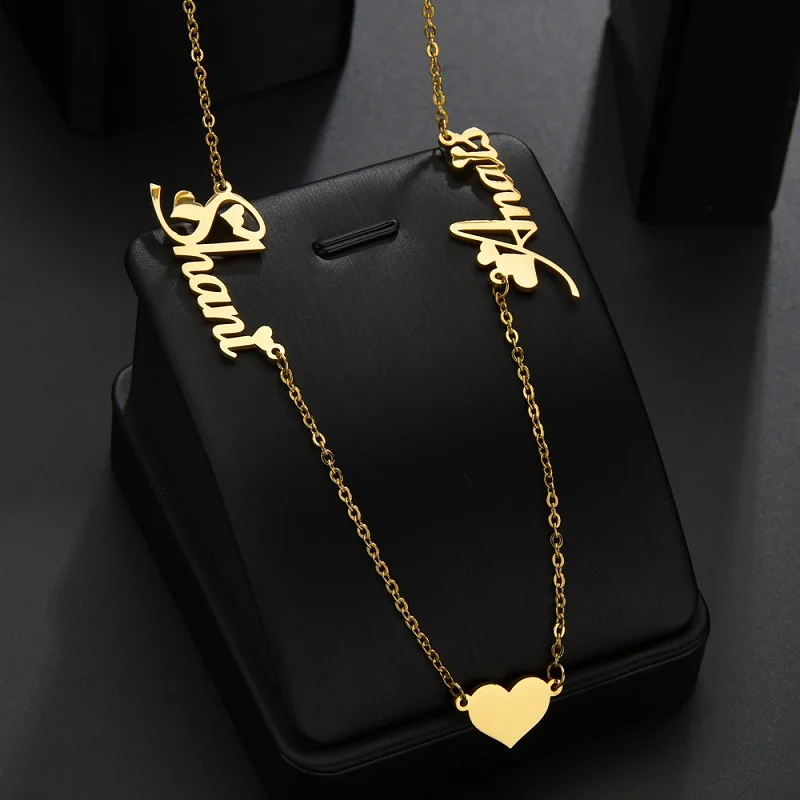 2021 Новое модное колье, персонализированное ожерелье с двумя именами, ожерелье из нержавеющей стали с именной табличкой на заказ, ожерелье для вечеринки для девочек, ювелирные изделия, подарок