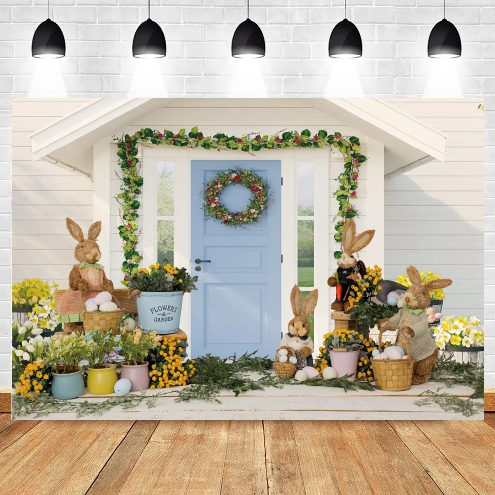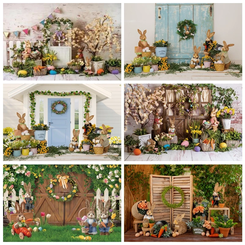 Фон для фотосъемки с изображением весенних Пасхальных Кроликов и яиц