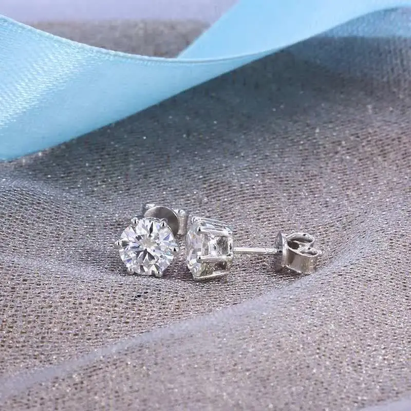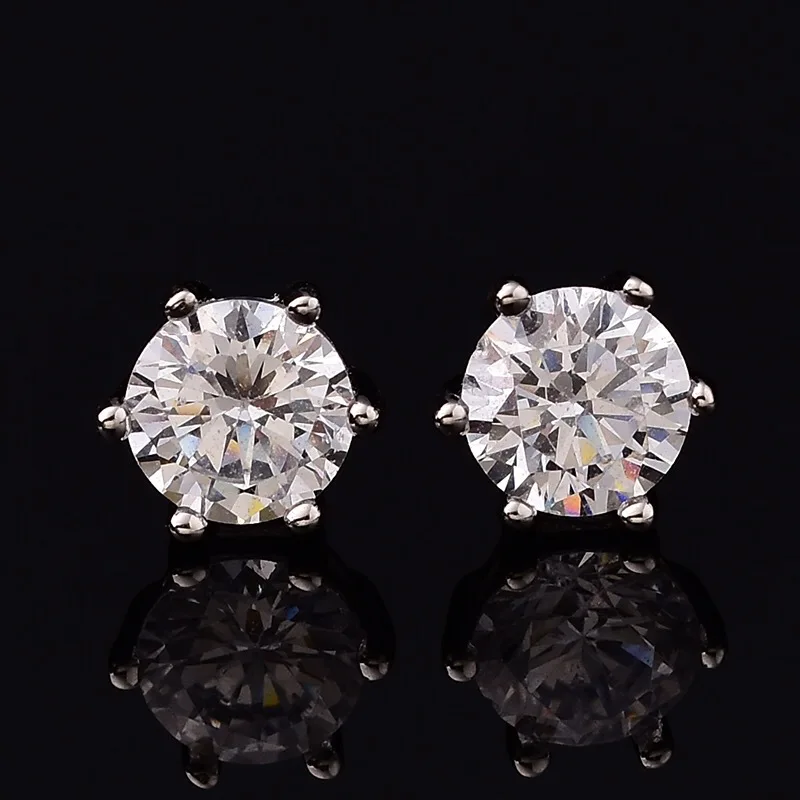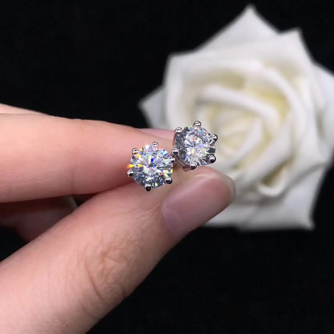 Материал: настоящий Муассанит Форма: круглая Цвет: Белый D Цвет Размер: 0.5ct(5 мм),1ct (6,5 мм), цена за одну пару Металл: Стерлинговое Серебро S925 пробы, покрытое белым золотом Каждая штука moissanite с GRA сертификатом и 100% бриллиантом