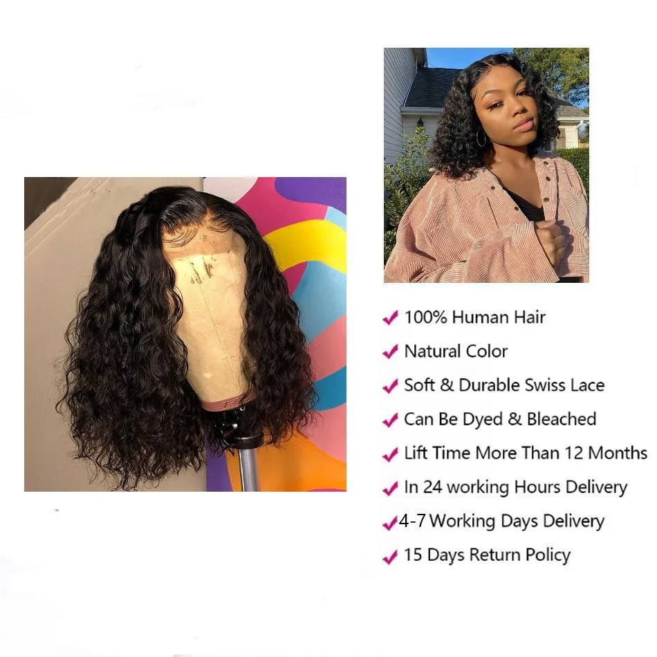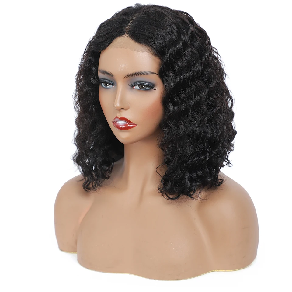 Глубокая волна кудрявый Боб закрытие парик 180 плотность для черных женщин кружева