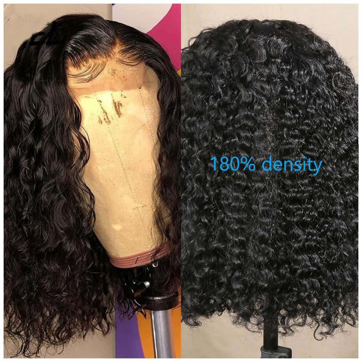 Парик с глубокой кудрявой застежкой Боб, плотность 180 для черных женщин, парики из человеческих волос на сетке спереди, парики с глубокой волной, бразильские волосы