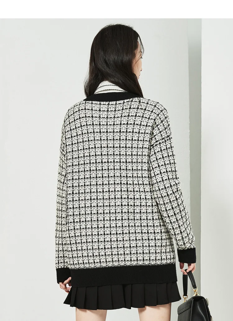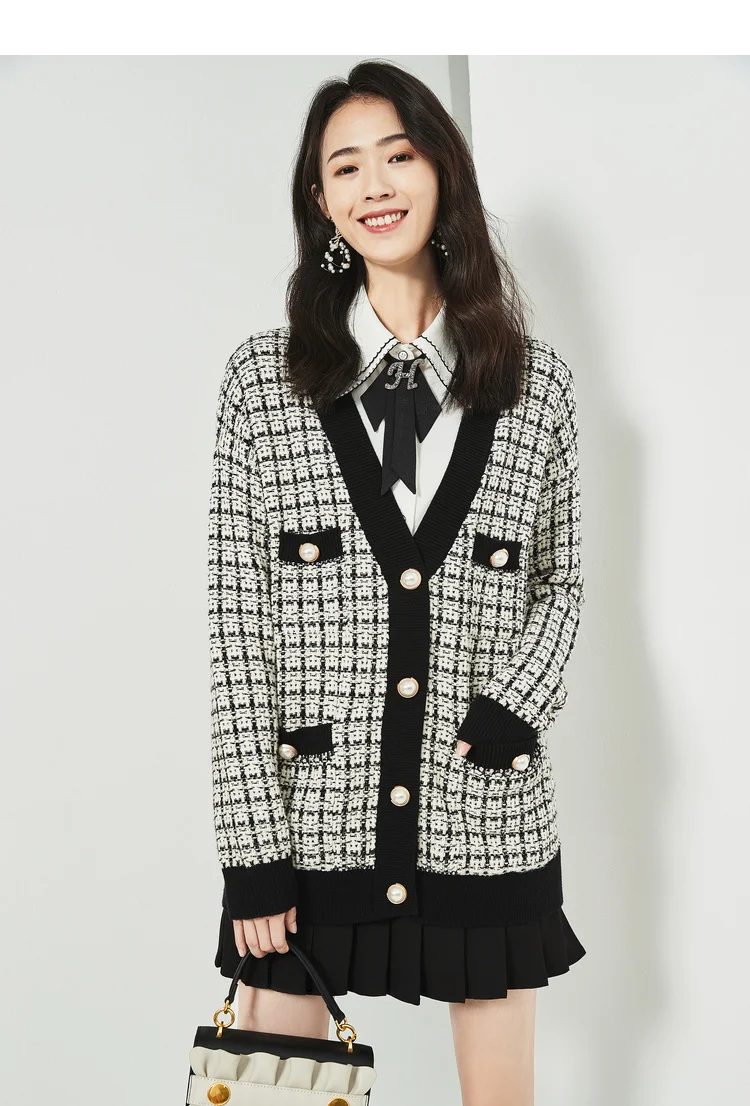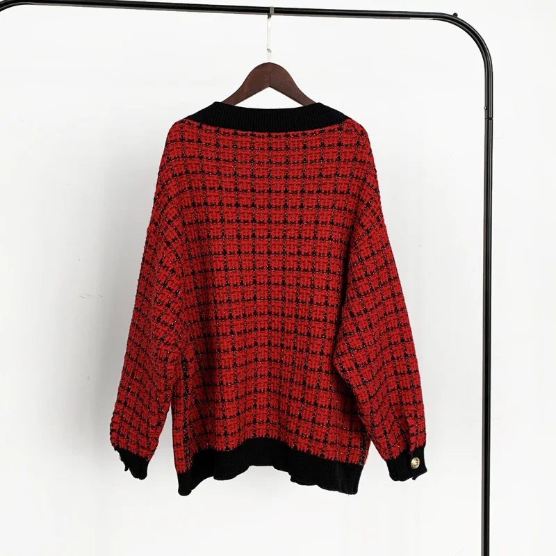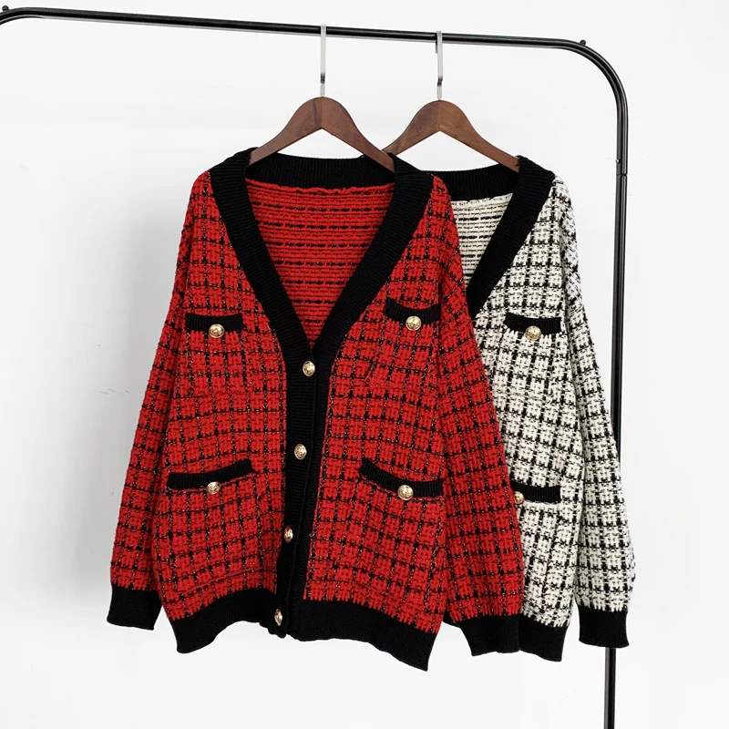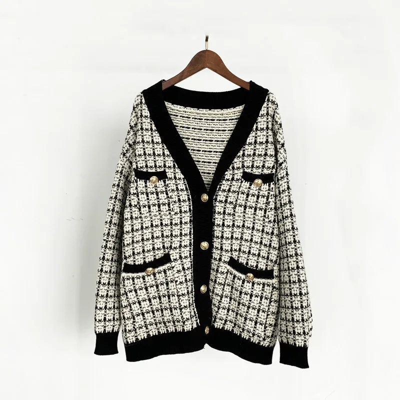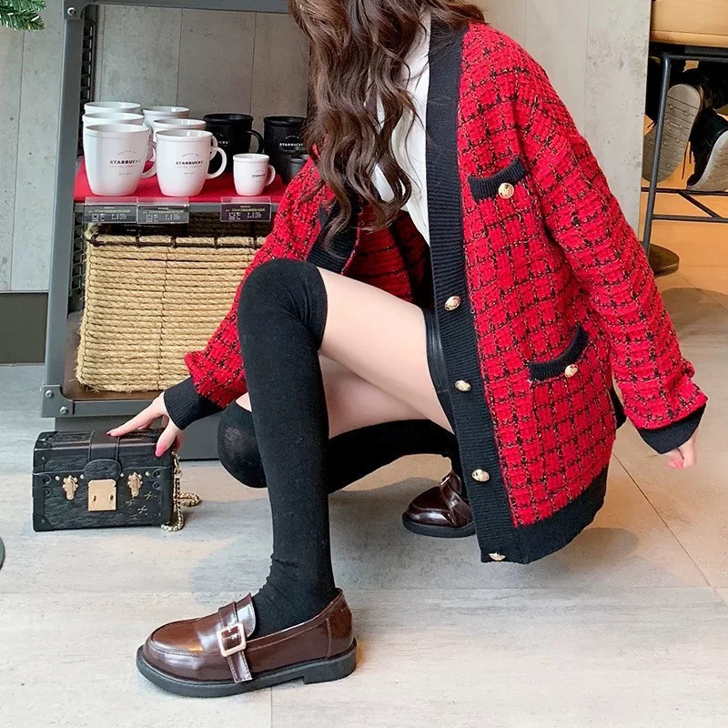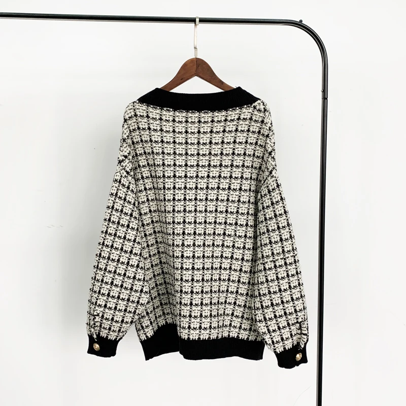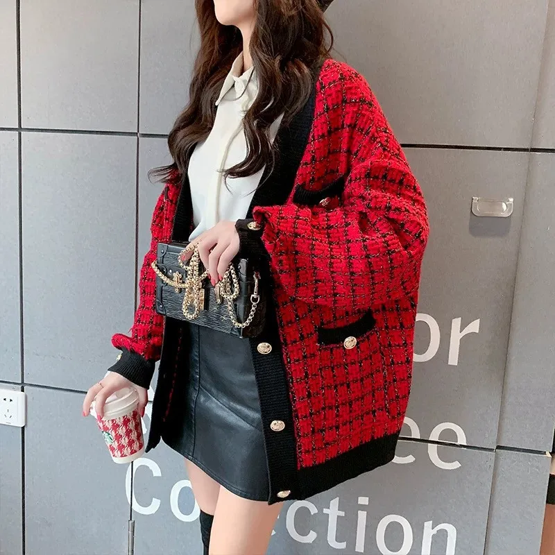 Свитер куртка 2020 женский оверсайз вязаный кардиган свободные клетчатые Джемперы Корейская одежда длинный халат Женское пальто