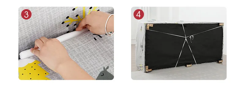 3. Сначала Подключите нескользящую полосу к середине, обратите внимание на одну сторону нескользящей ленты, а затем Отделите ткань плоской, сначала посередине, а затем с обеих сторон. 4. Переверните диван и используйте белую веревку в нижней части, чтобы носить дополнительную ткань и привязать ее друг к другу в нижней части.