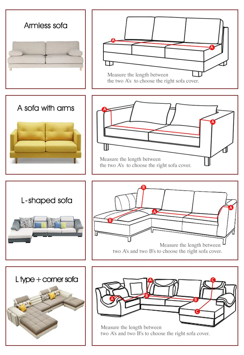 Измерьте длину каждого дивана и выберите несколько чехлов для дивана в соответствии с длиной, не выбирайте и не выбирайте один чехол для дивана, который может покрыть весь комбинированный диван!