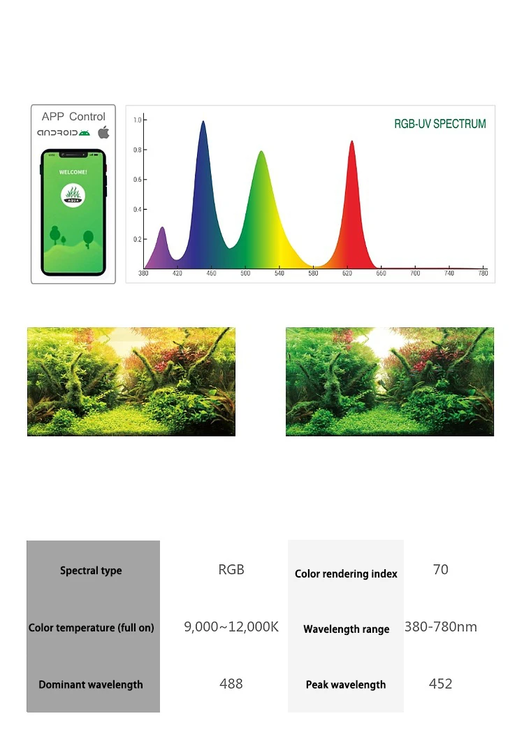 Аквариумный светсветильник льник с регулировкой яркости и таймером, 90 Вт