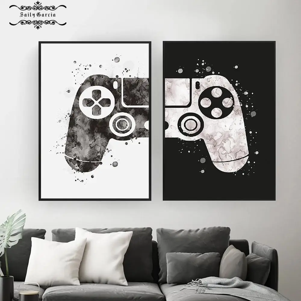 Минималистичный игровой постер для мальчиков, принт геймпада, иллюстрация игры, настенное искусство, картина с джойстиком, холст, картина для игровой комнаты, домашний декор
