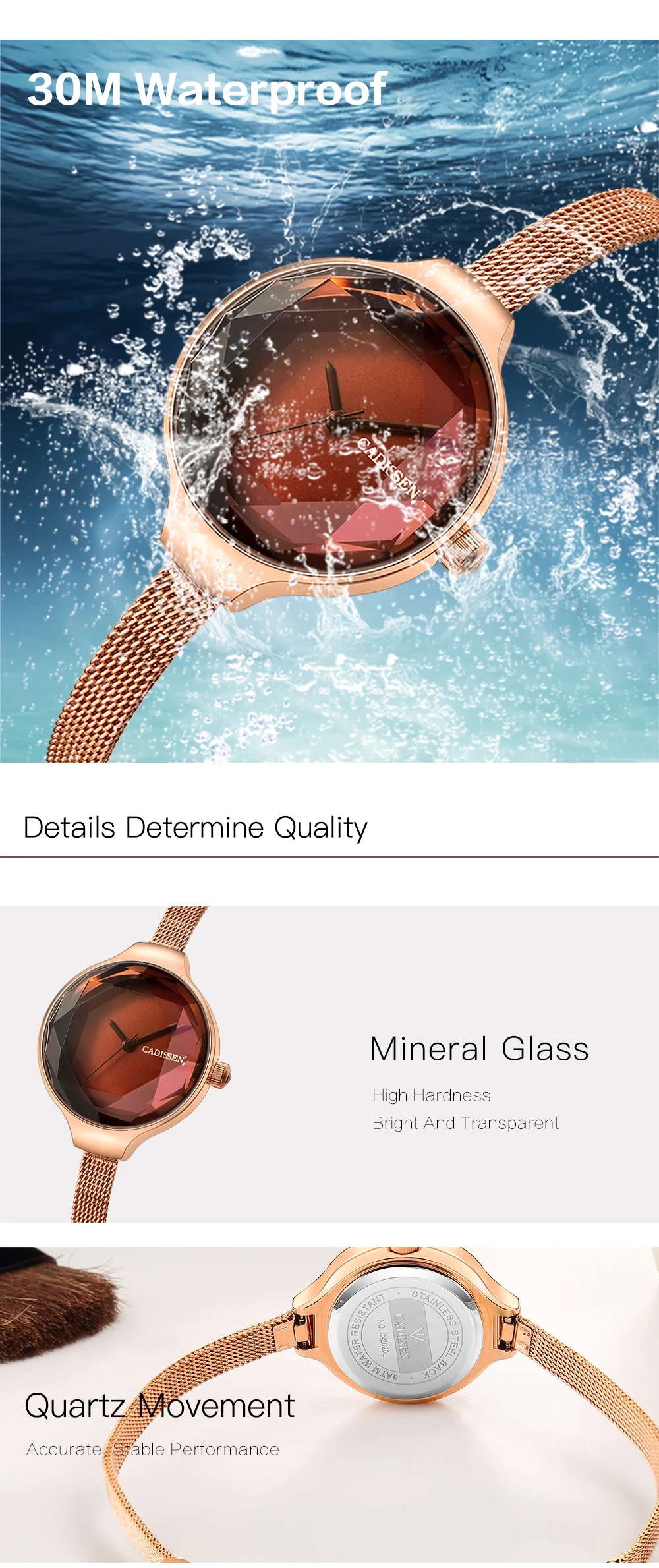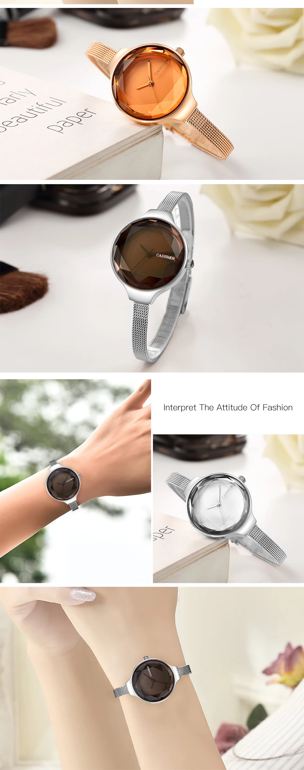 Женские кварцевые часы CADISEN, модные брендовые наручные часы из нержавеющей стали, наручные часы, новинка 2020