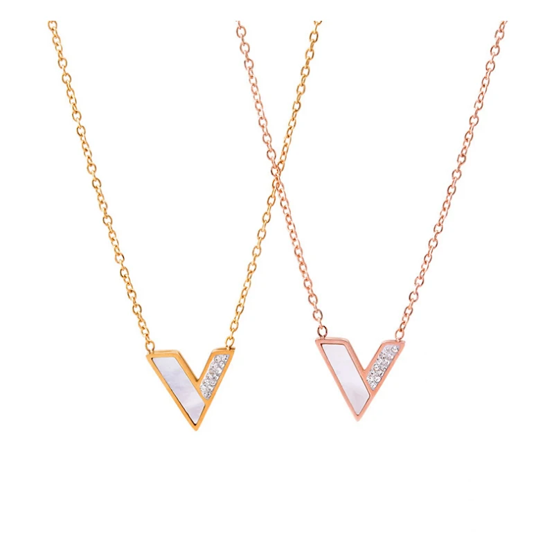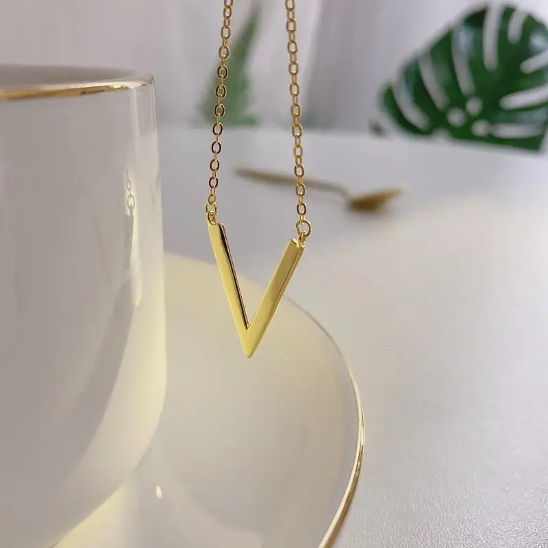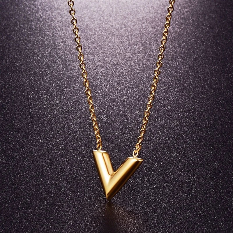 26 букв V ожерелье с подвеской для женщин ожерелье Новая мода металлическая цепочка с подвеской в минималистическом вечерние ювелирные изделия, три ряда Цвета