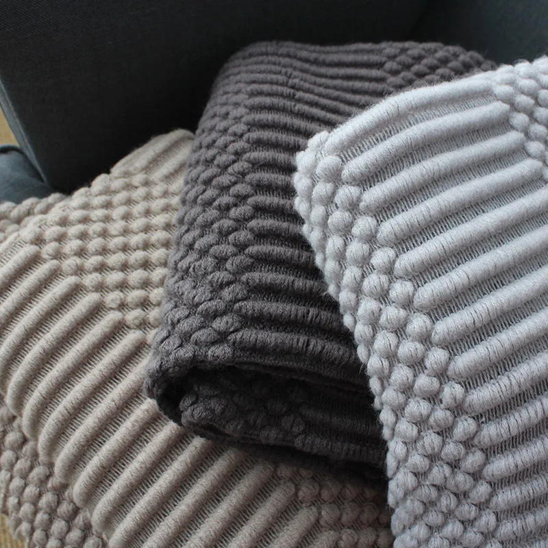 Вязаное одеяло в нордическом стиле для кровати, дивана, однотонное ...