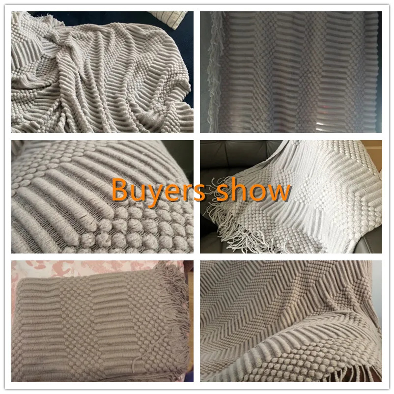Плед в европейском стиле, вязаный, для кондиционера, ворсовое одеяло, удобное, теплое, с кисточками, в скандинавском стиле, однотонное, цветные одеяла s, для кровати, дивана, черный, серый