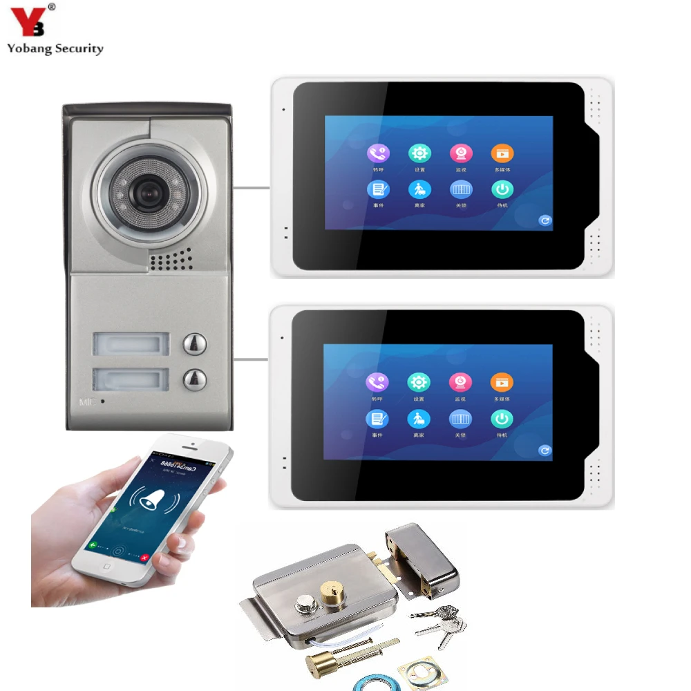 Видеодомофон, 7 дюймов, проводной, Wi-Fi, 2 квартирысемьи, домофон, 1 дверной звонок, камера с 2 кнопками, 2 монитора