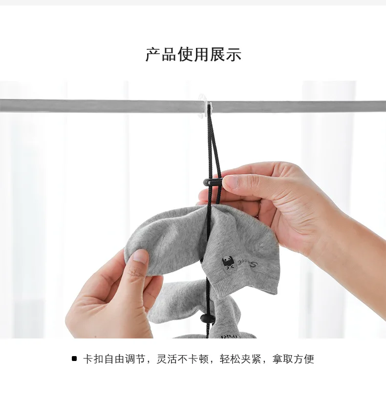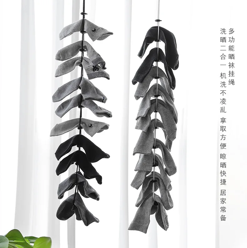 Веревка для хранения носков, Регулируемая Веревка для одежды, зажим...