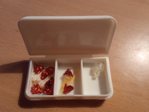Прибыло в отделение почты на 37 день со дня заказа (Свердловская область). Спасибо большое продавцу за скидку! Таблетница маленькая, но хорошая. Закрывается хорошо. Крышка довольно туго ходит. Так как я пью таблетки по 3 раза в день, то мне по сути её хватает только на день. Но всё равно хорошо, особенно со скидкой. Давно хотел нечто подобное. Для просмотра фотографии в большом размере – перетяните её миниатюру на новую вкладку в браузере.