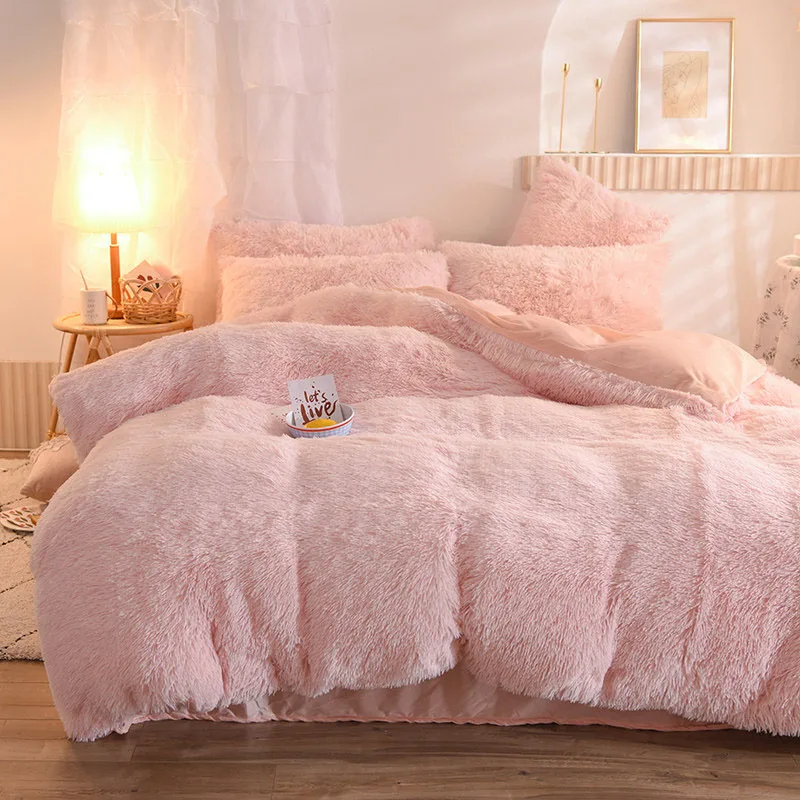 Комплект постельного белья из норкового бархата, плюшевый, зимний, толстый пододеяльник, однотонные простыни и наволочки для дома, мягкое постельное белье