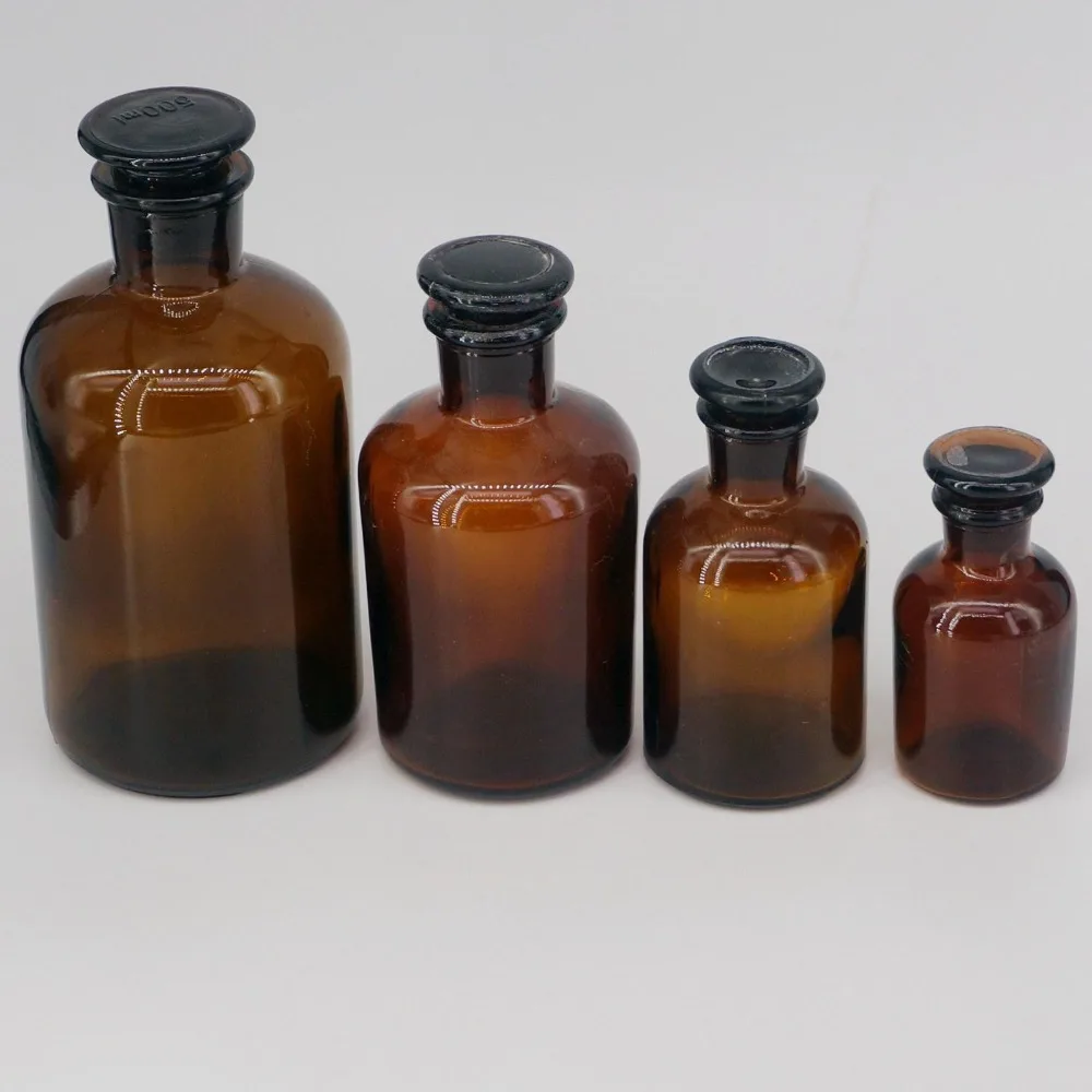 Флакон для реагентов с узким горлом, 6012525050010002500 мл, коричневое Янтарное стекло с грунтовой стеклянной пробкой, лабораторная химия