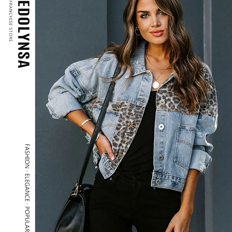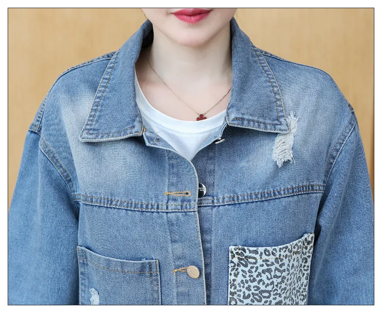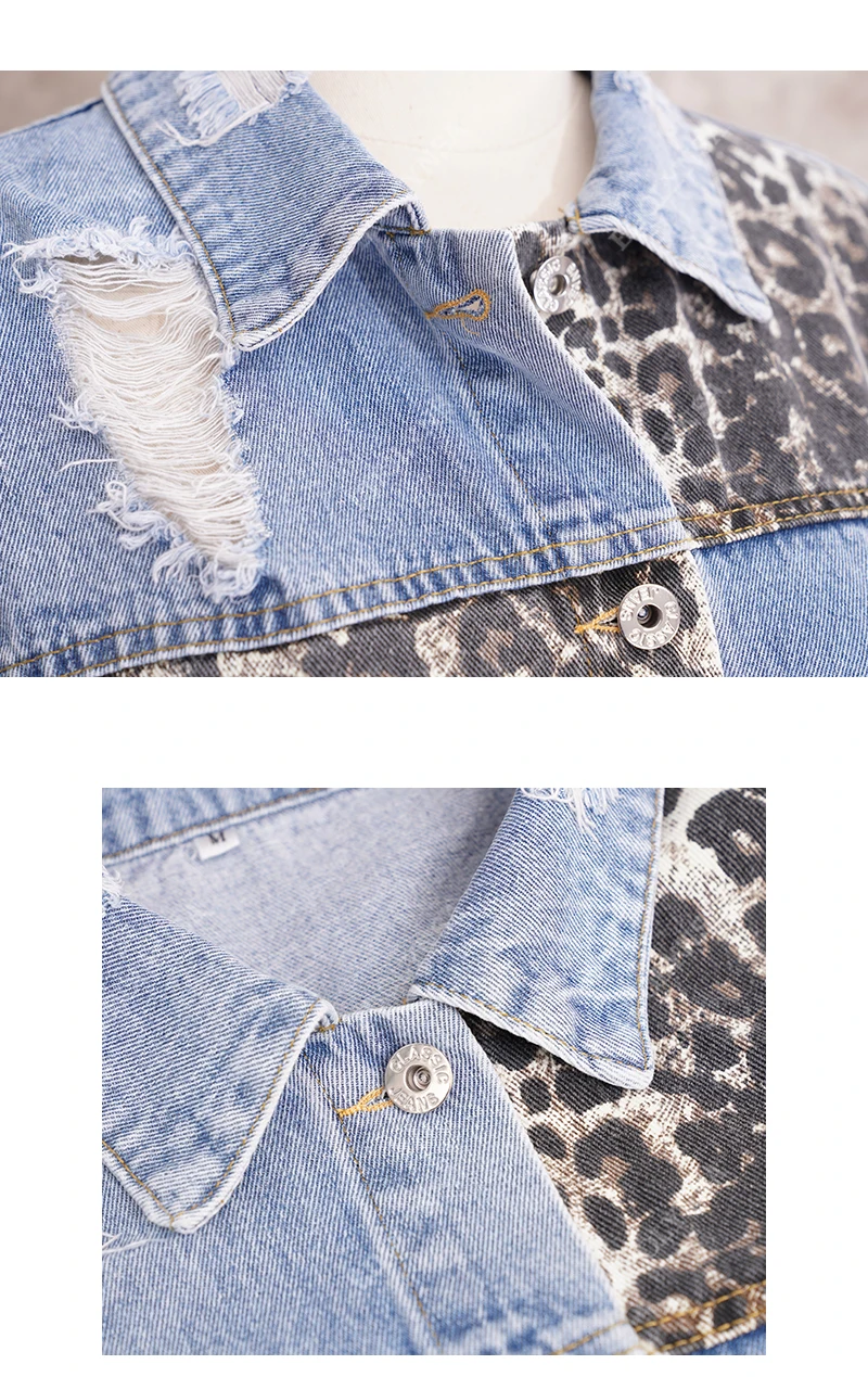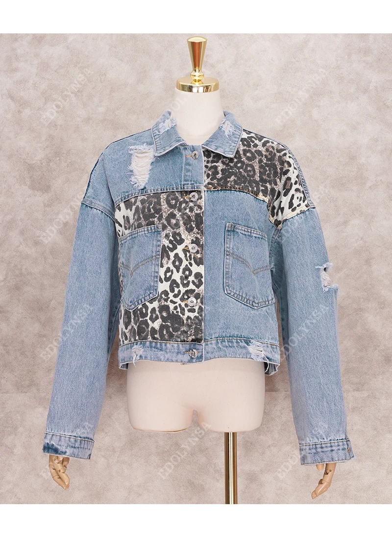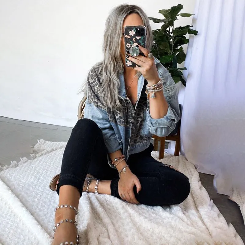 Модные джинсовые куртки в стиле пэчворк с леопардовым принтом, женские куртки 2022, весеннее пальто, уличная одежда, повседневное пальто с карманами, женские короткие Стильные топы Y55