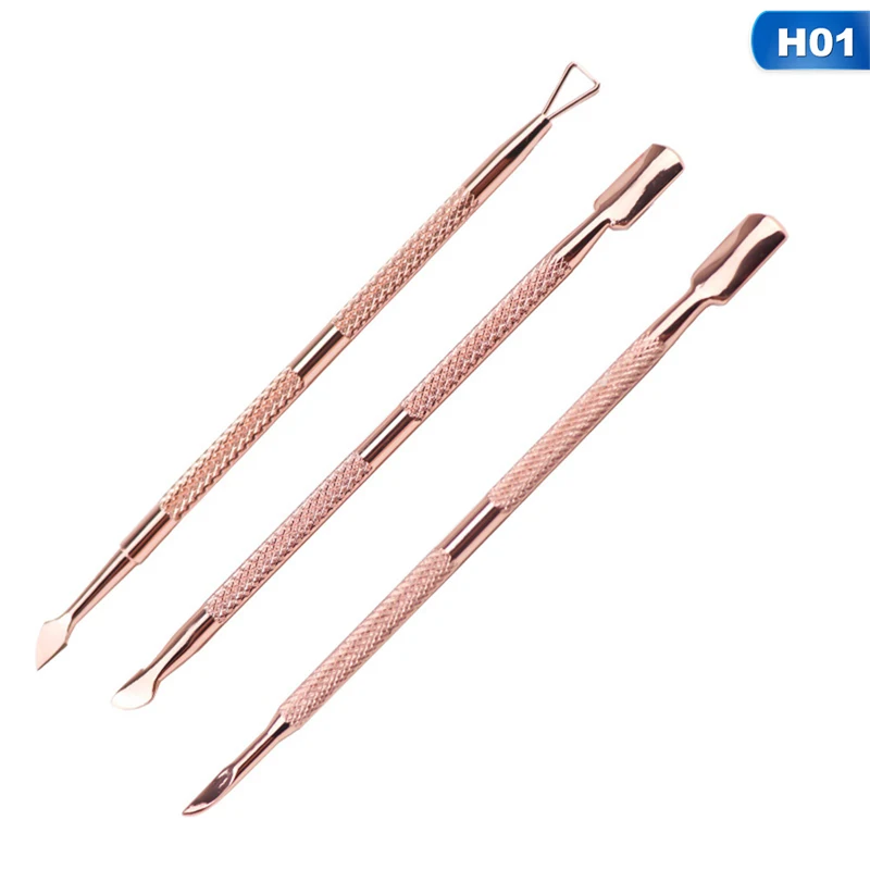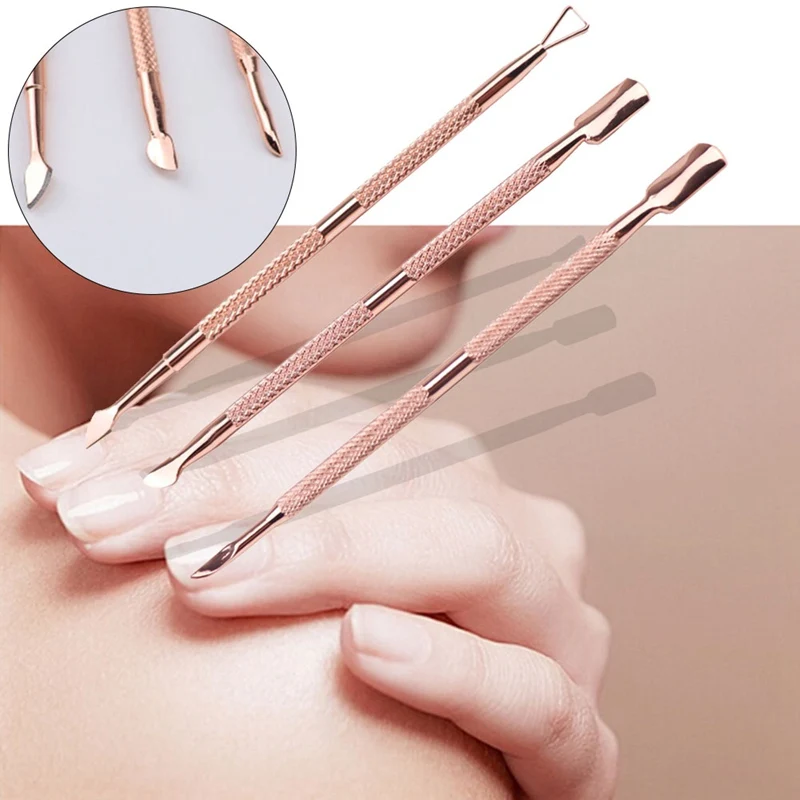 3 шт. Уход за ногтями очиститель инструменты для дизайна ногтей кутикулы толкатель набор маникюрный педикюр инструмент розовое золото нержавеющая сталь палец омертвевшая кожа Push