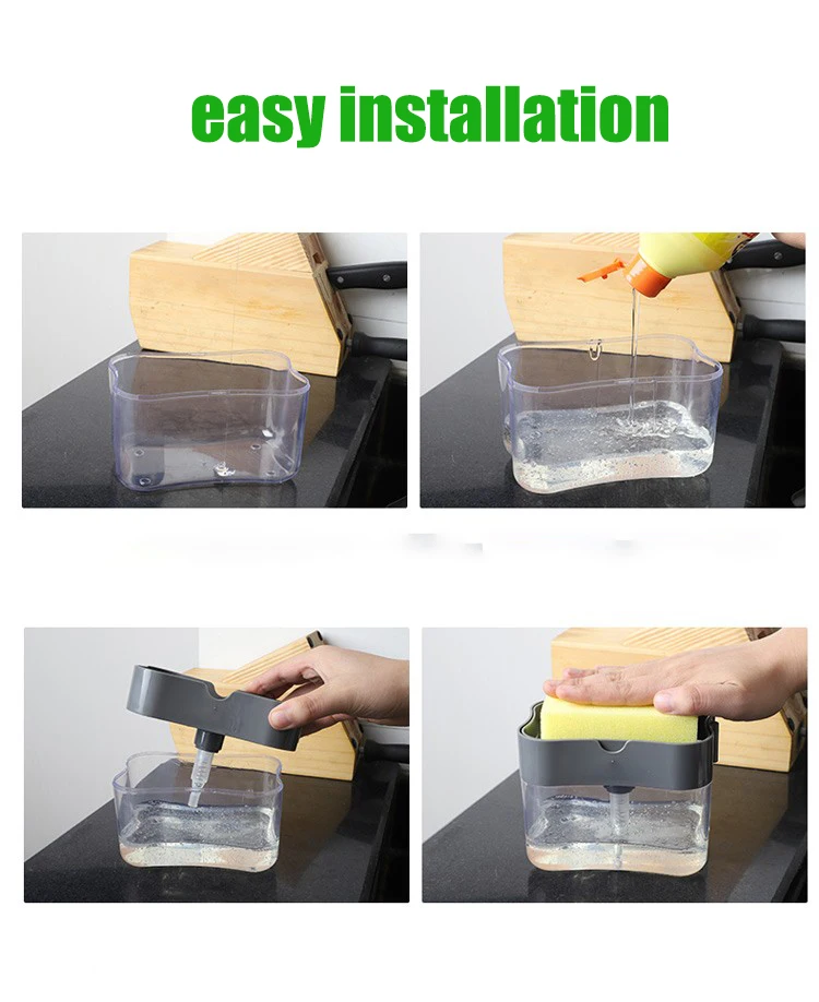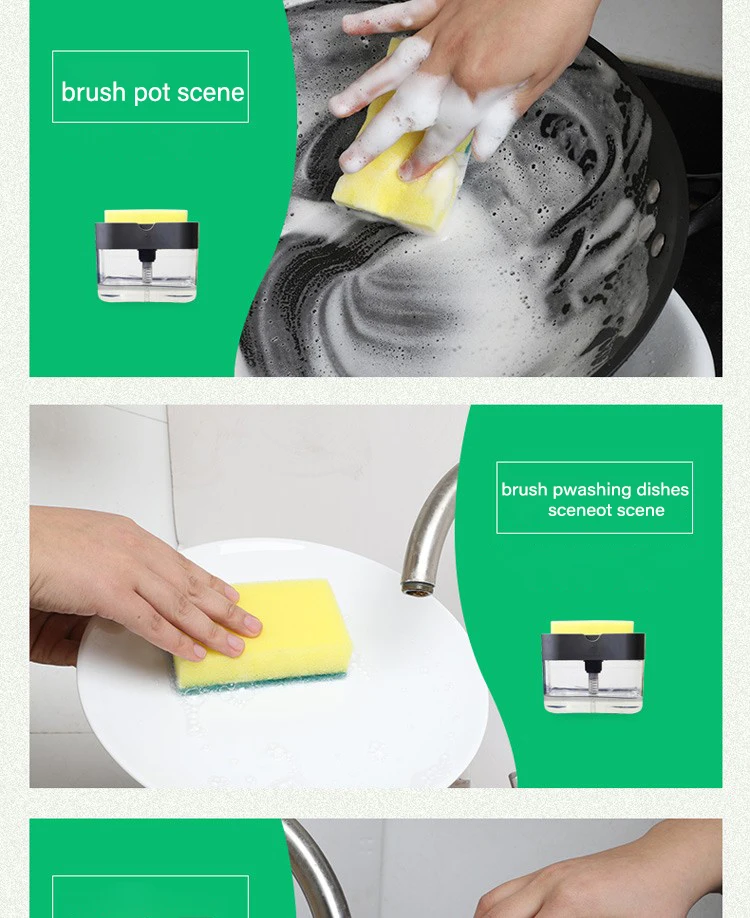 2 in 1 design,soap dispenser and spongeDispenses the perfect amount of dish soap up onto the sponge