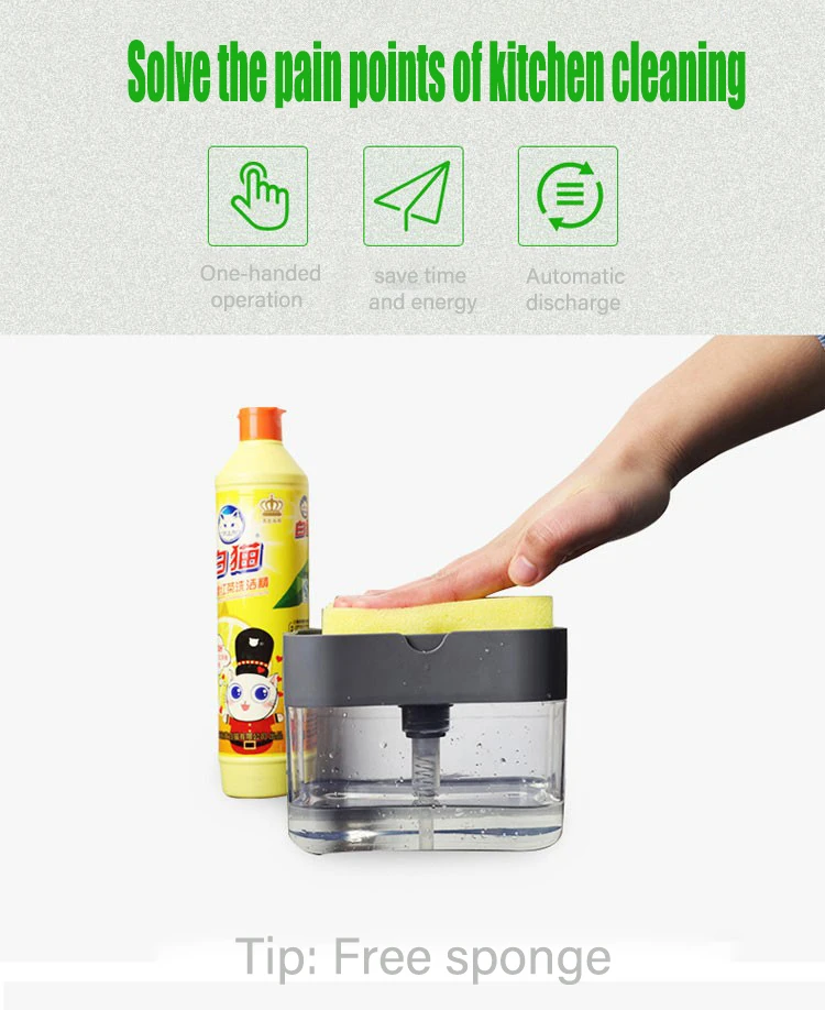Диспенсер для мыла с губчатым держателем, контейнер для жидкости, Ручной пресс-органайзер, кухонный инструмент для очистки