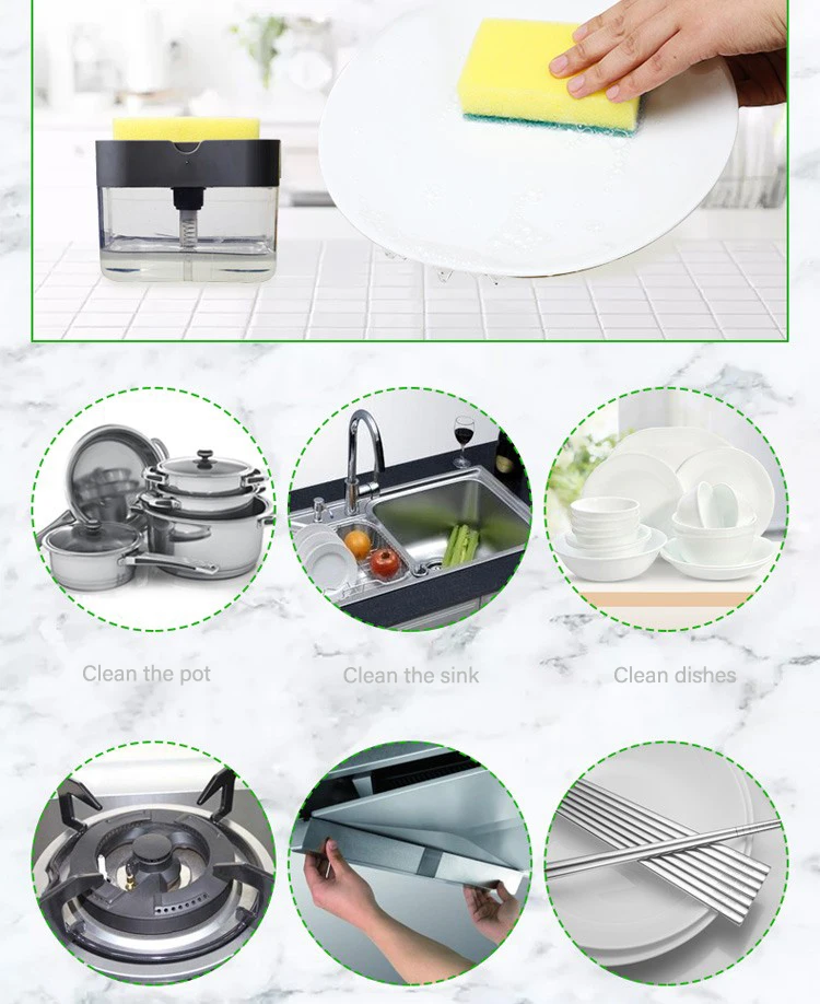 Soap Pump Dispenser and SpongeManual Press Liquid Soap Dispenser Sponge