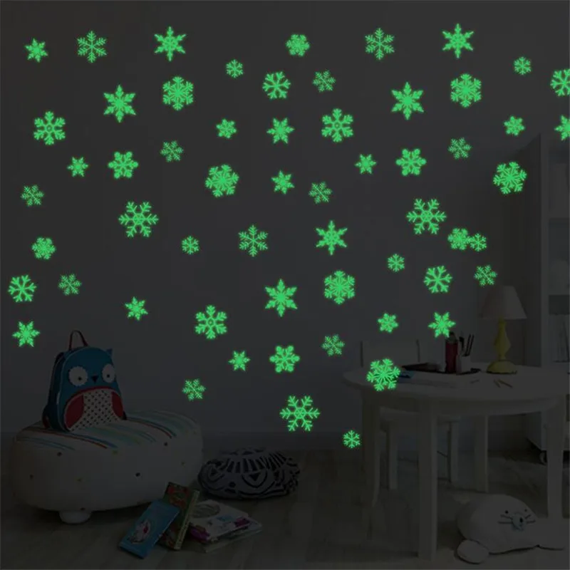 50 шт. светящиеся наклейки настенные стикеры снежинки светится в те...