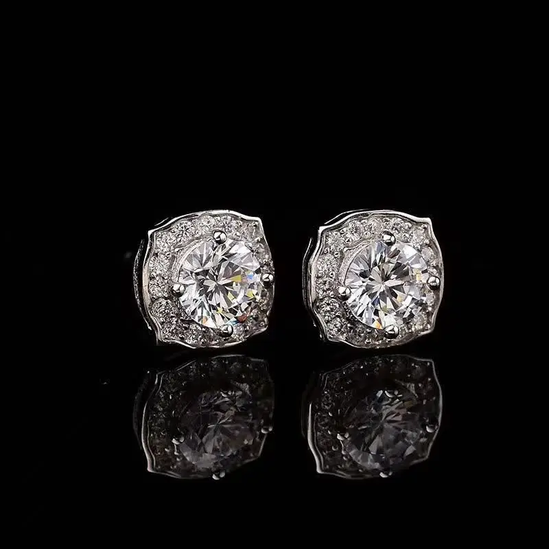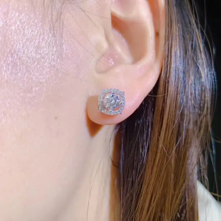 Материал: настоящий Муассанит Форма: круглая Цвет: Белый D Цвет Размер: 0.5ct(5 мм), цена за одну пару Металл: Стерлинговое Серебро S925 пробы, покрытое белым золотом Каждая штука moissanite с GRA сертификатом и 100% бриллиантом