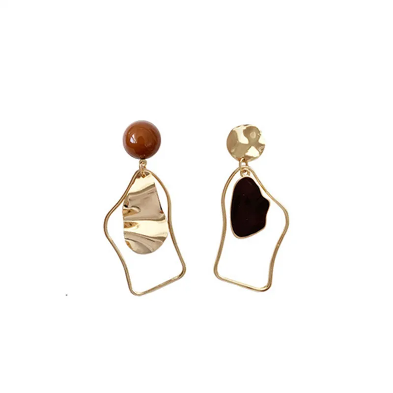 Корейские трендовые нестандартные золотые металлические серьги-капл...