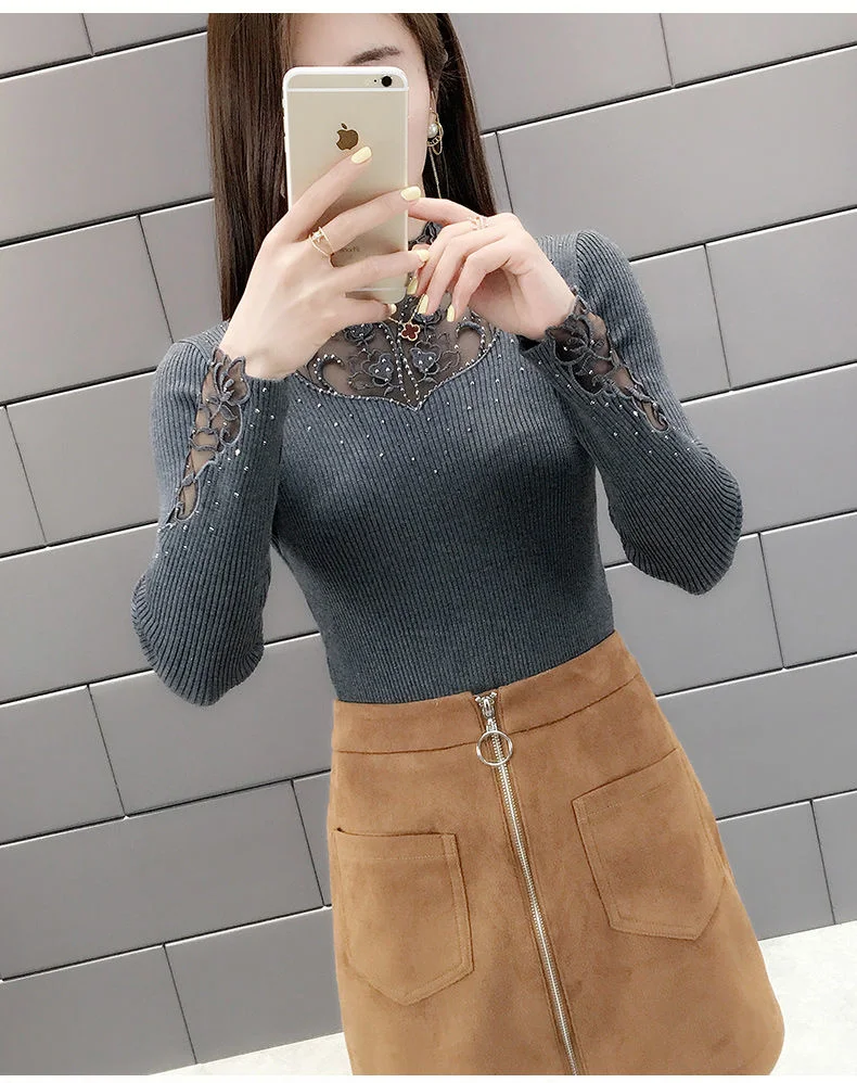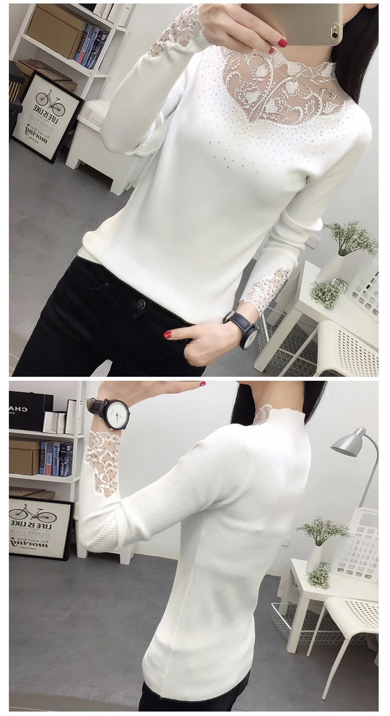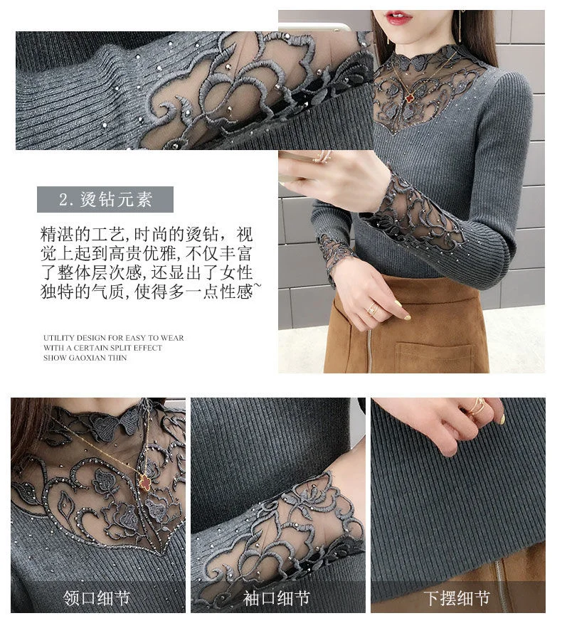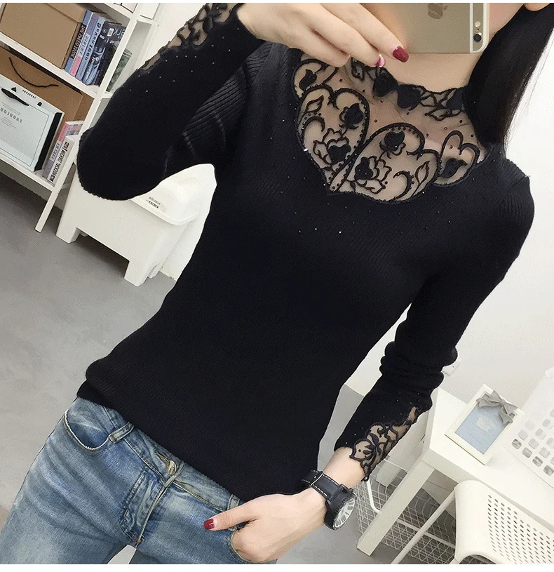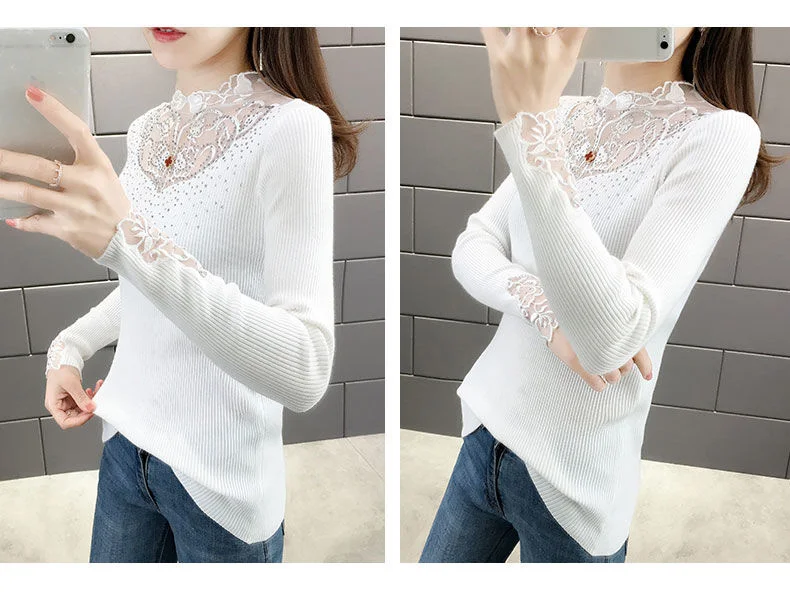 Женский трикотажный короткий свитер, облегающая уличная рубашка с кружевным воротником и длинным рукавом, 2020