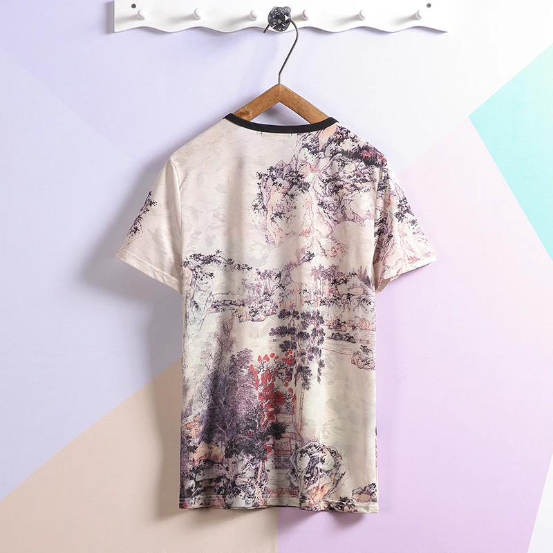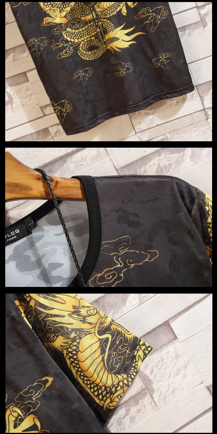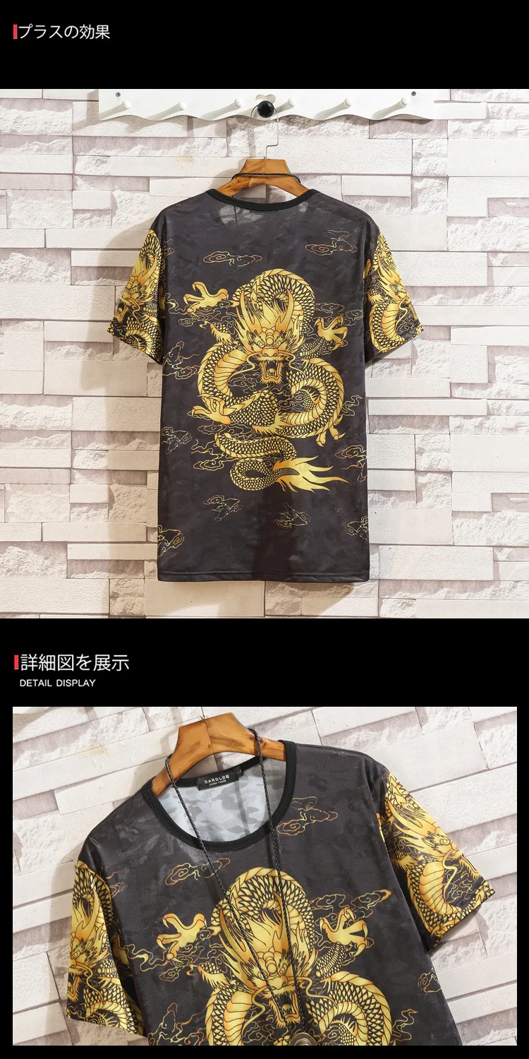 Шелковая футболка с короткими рукавами для мужчин; Коллекция 2022 года; Летняя черная футболка с принтом китайского дракона; Футболки в стиле хип-хоп, панк-рок; Модная одежда; Большие размеры