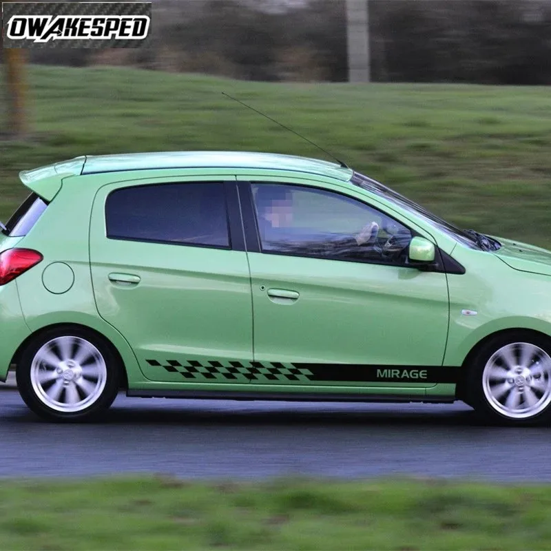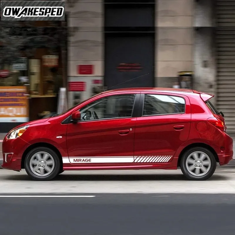 Виниловая наклейка авто тело полосы хэтчбек седан наклейки для Мицубиси Мираж автомобиля Стайлинг стикер двери обе стороны юбкиОписание:100% новый (никогда не был использован или установлен)