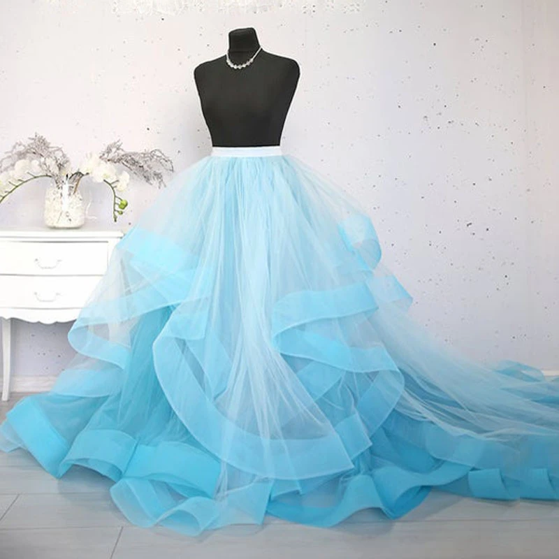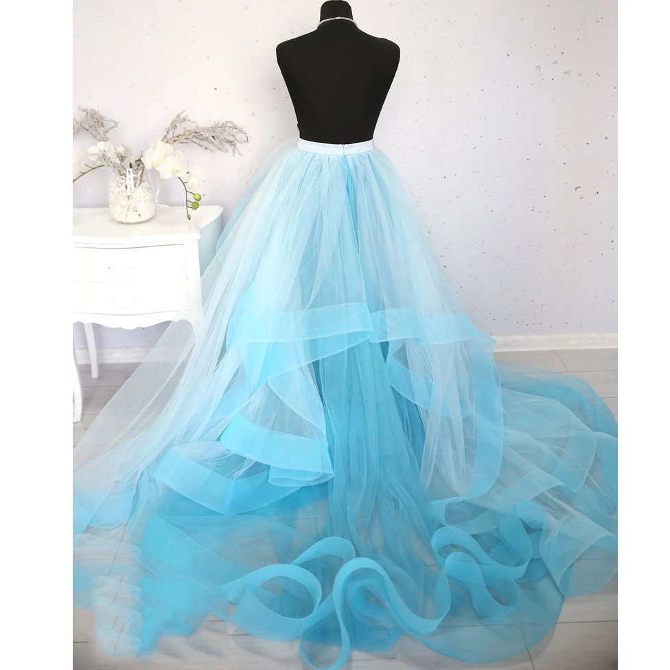 Женская Длинная свадебная юбка, небесно-голубая юбка макси с драпир...