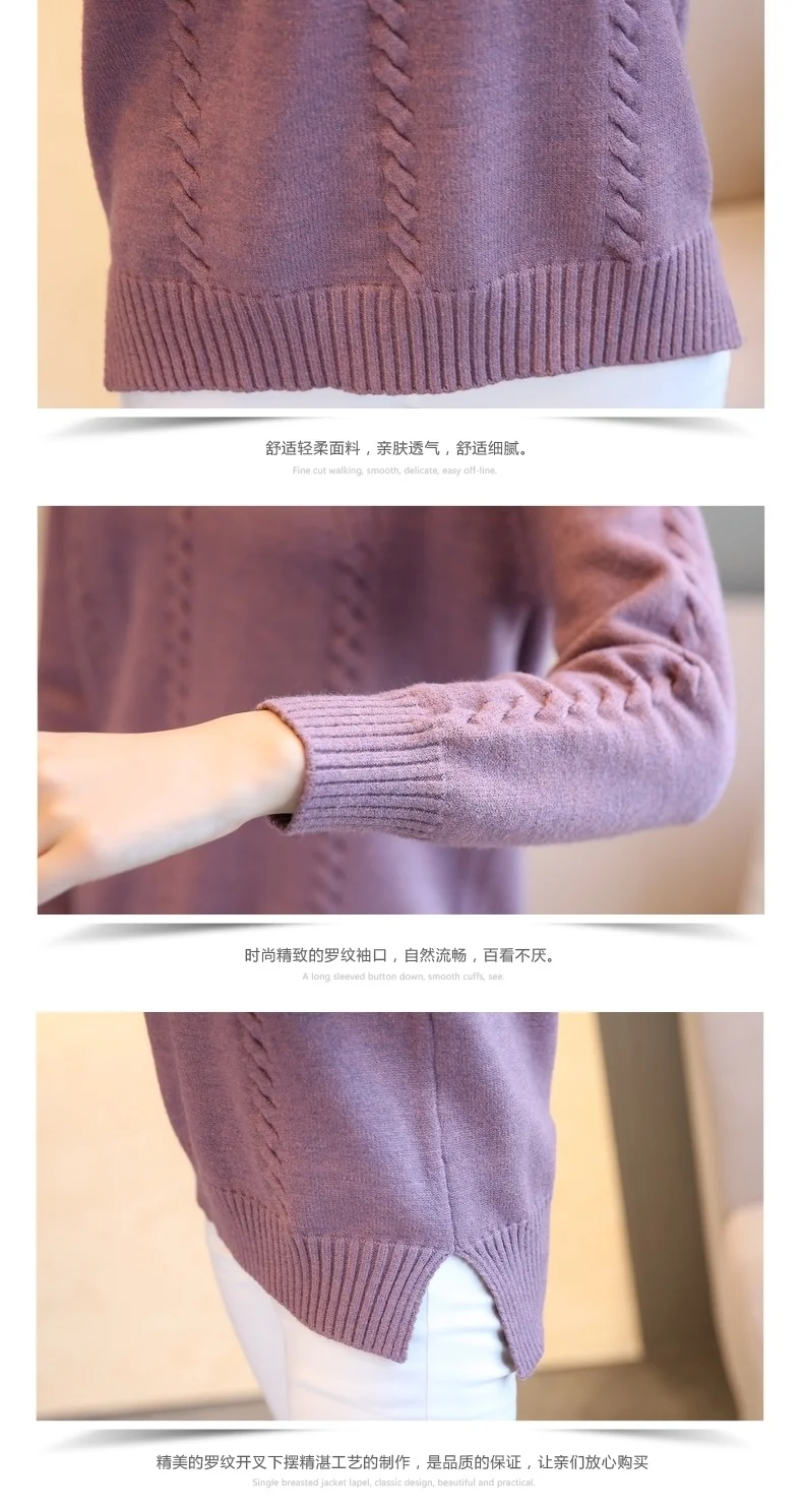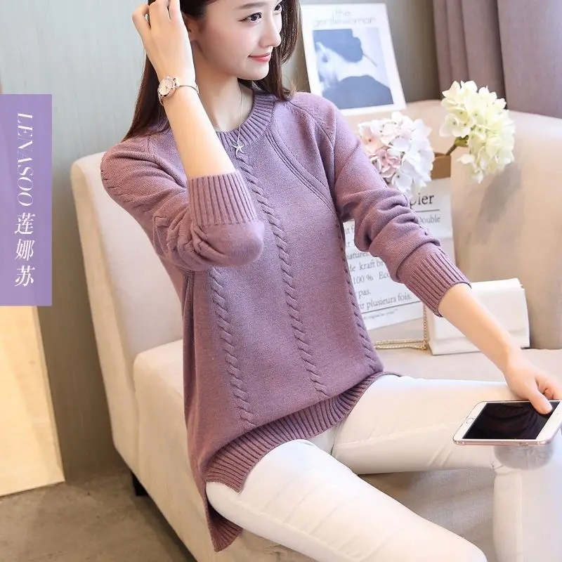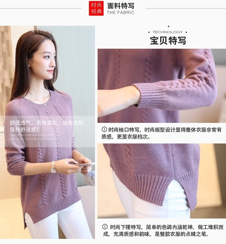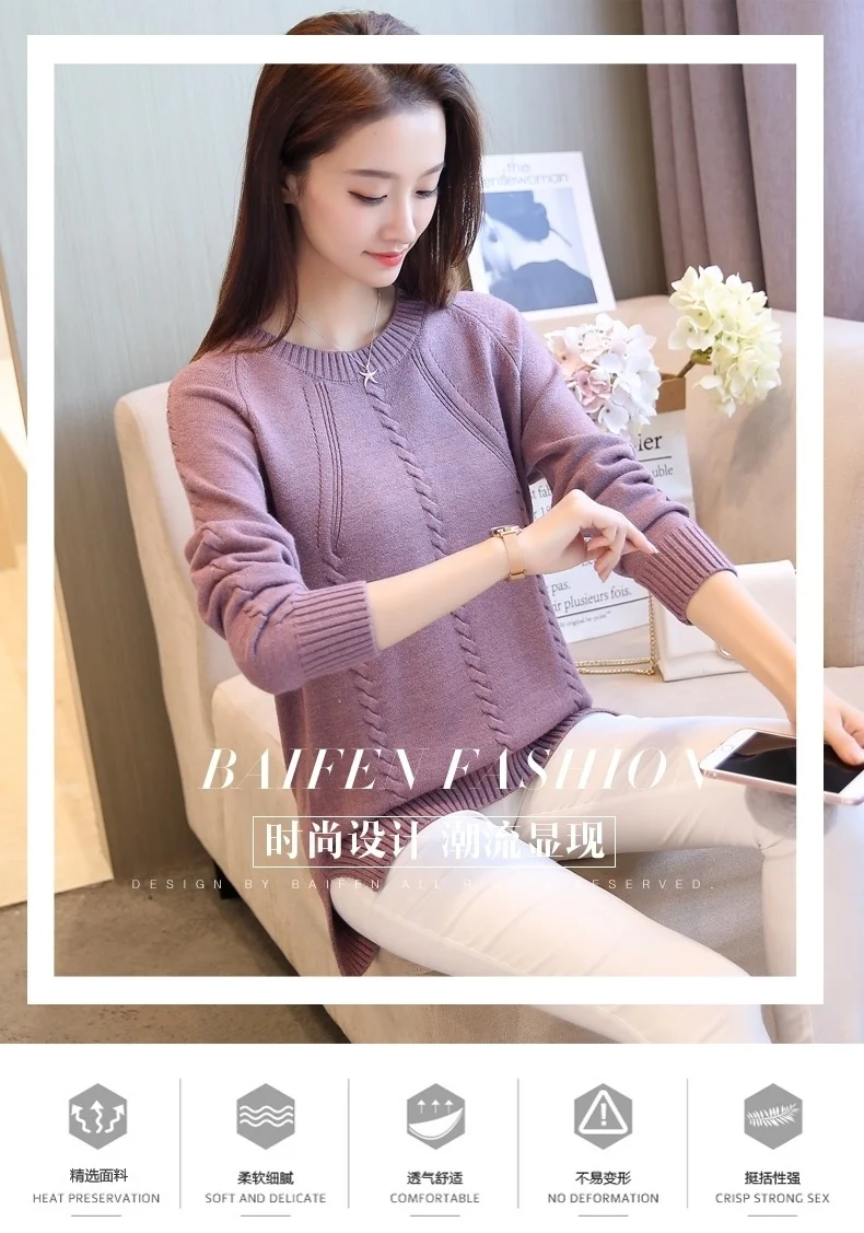 Женский пуловер с круглым вырезом, свитер на осень и зиму, новая Свободная трикотажная одежда с цветочным принтом и разрезом