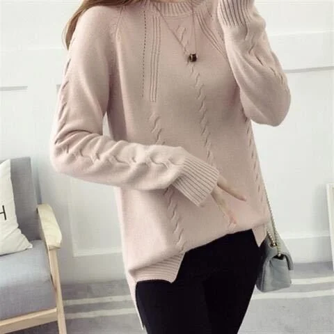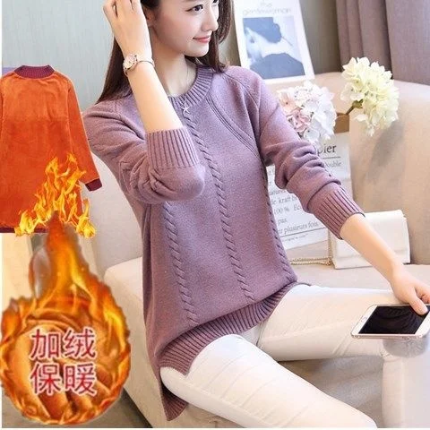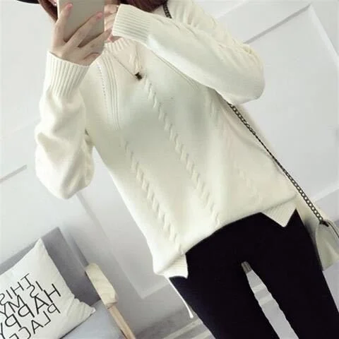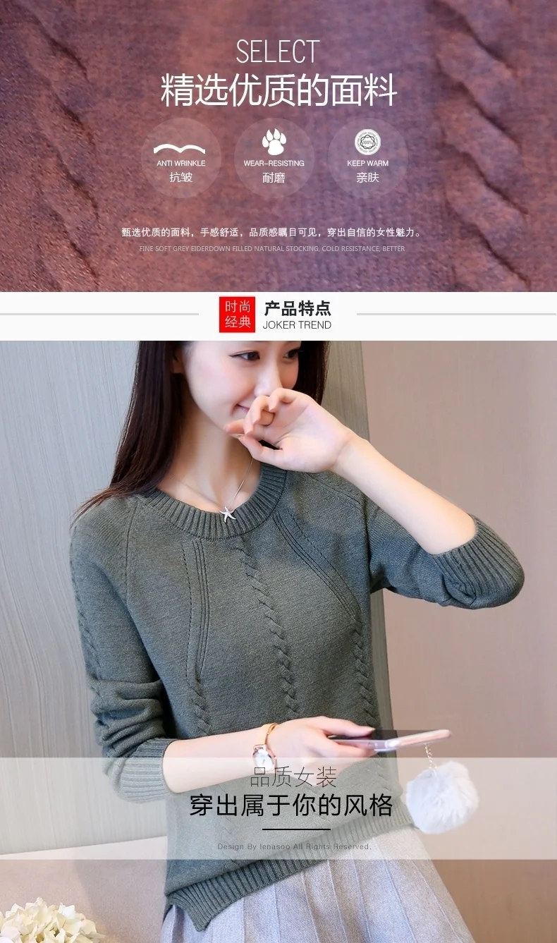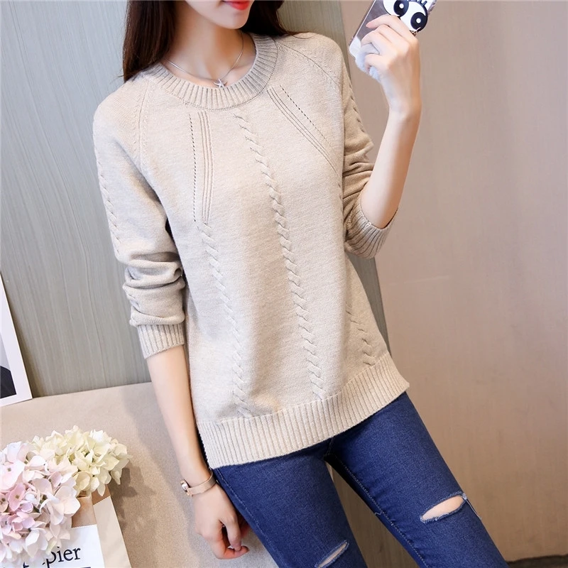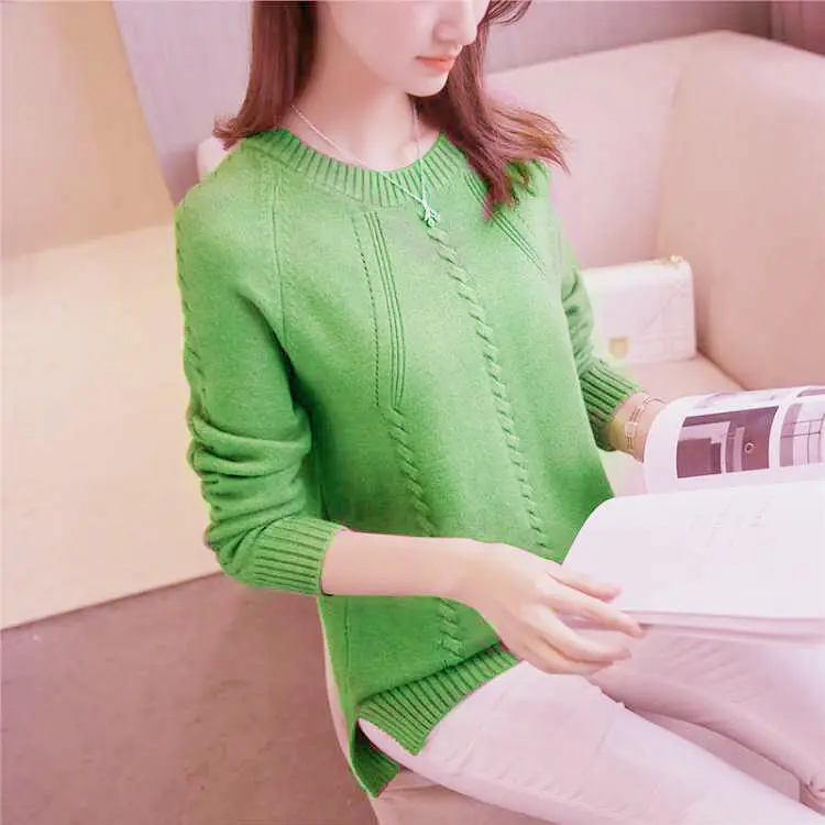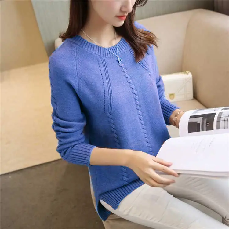 Женский пуловер с круглым вырезом, свитер на осень и зиму, новая Свободная трикотажная одежда с цветочным принтом и разрезом