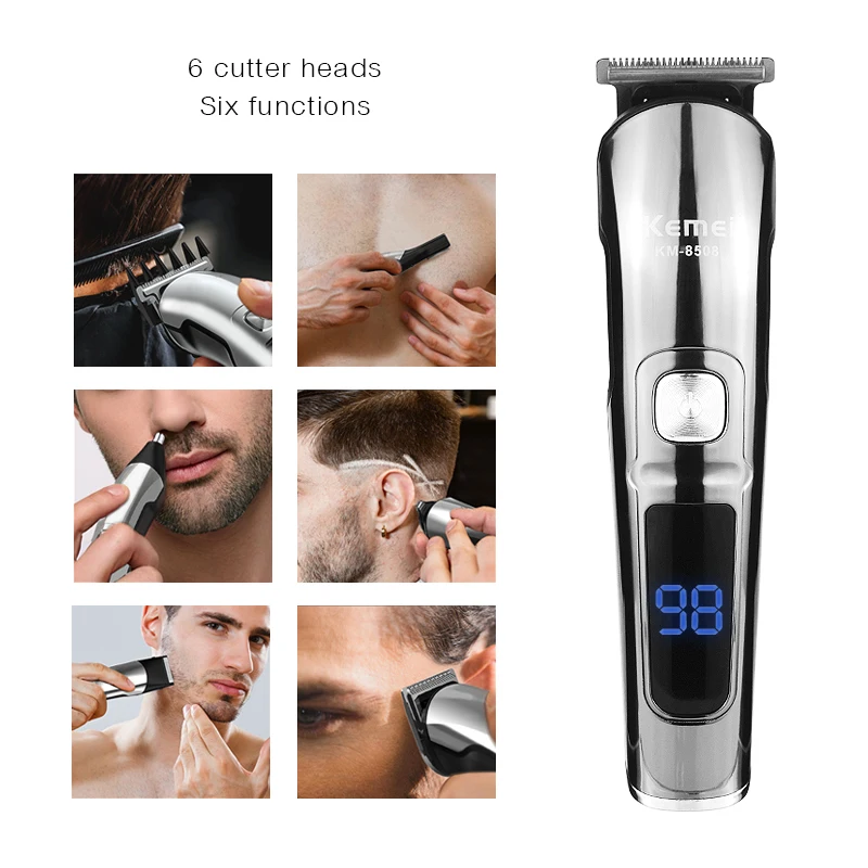 Электрическая машинка для стрижки волос Kemei 6 в 1, мощный беспров...