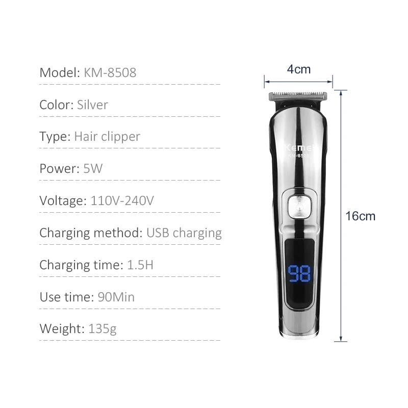 Многофункциональная электрическая машинка для стрижки волос Kemei, профессиональный триммер для волос для мужчин, машинка для стрижки бороды с лезвиями из углеродистой стали, 45 г