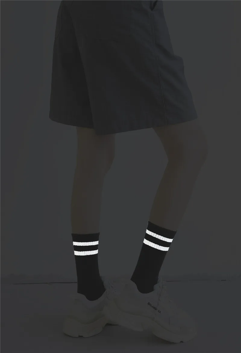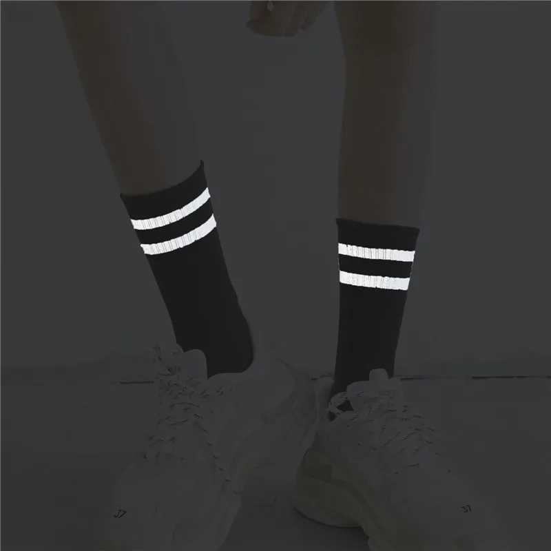 Флуоресцентные модные носки, женские носки без пятки, светоотражающие, модные уличные хлопковые студенческие носки в стиле хип-хоп, светящиеся крутые ночные носки