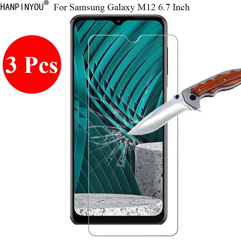 Новое закаленное стекло 3 шт.лот 9H 2.5D, Защита экрана для Samsung Galaxy M12, защитная пленка 6,7 дюйма + инструменты для очистки
