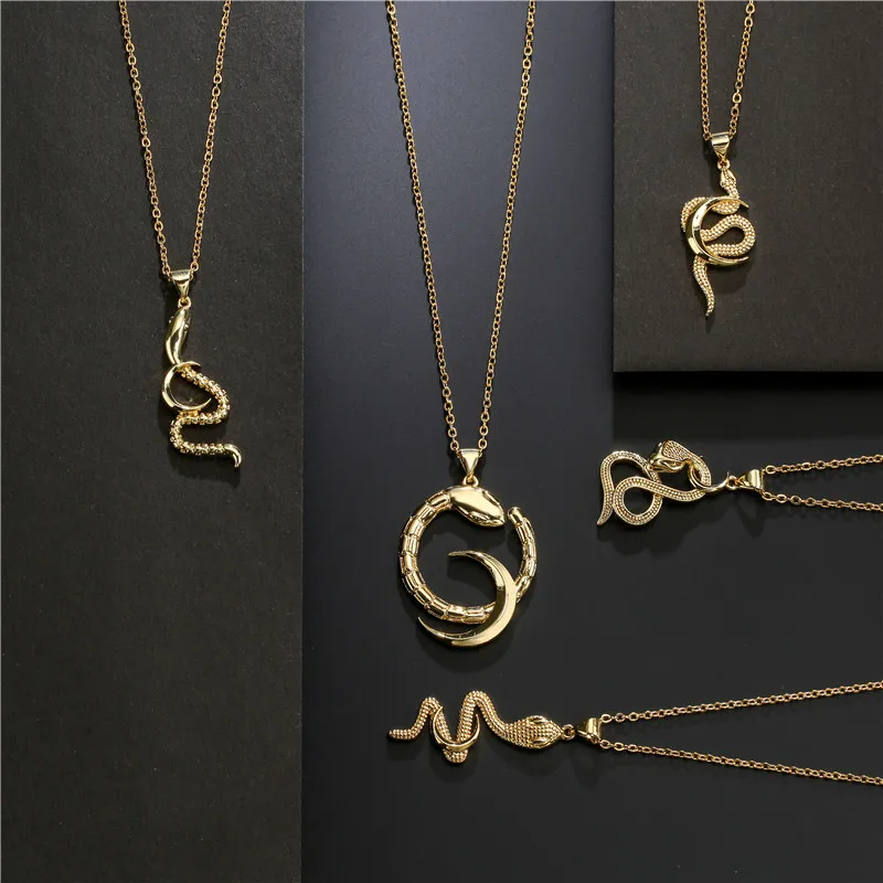 Винтажное медное ожерелье в виде змеи золотого цвета для женщин и мужчин, уникальный дизайн, ожерелья в стиле хип-хоп, панк, бижутерия для женщин, 15 видов