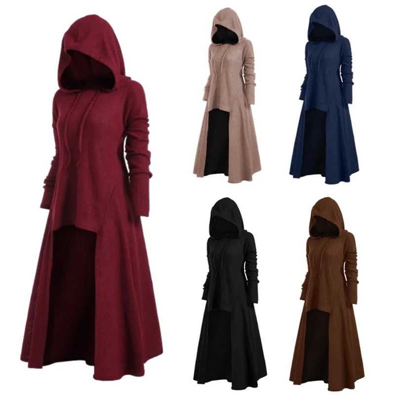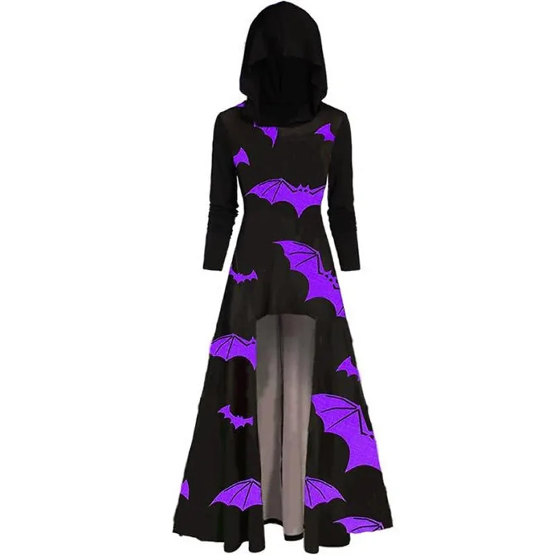 Длинное черное платье в готическом стиле, женское трикотажное платье с капюшоном, стиль размера плюс, топы, весна-осень, 2020