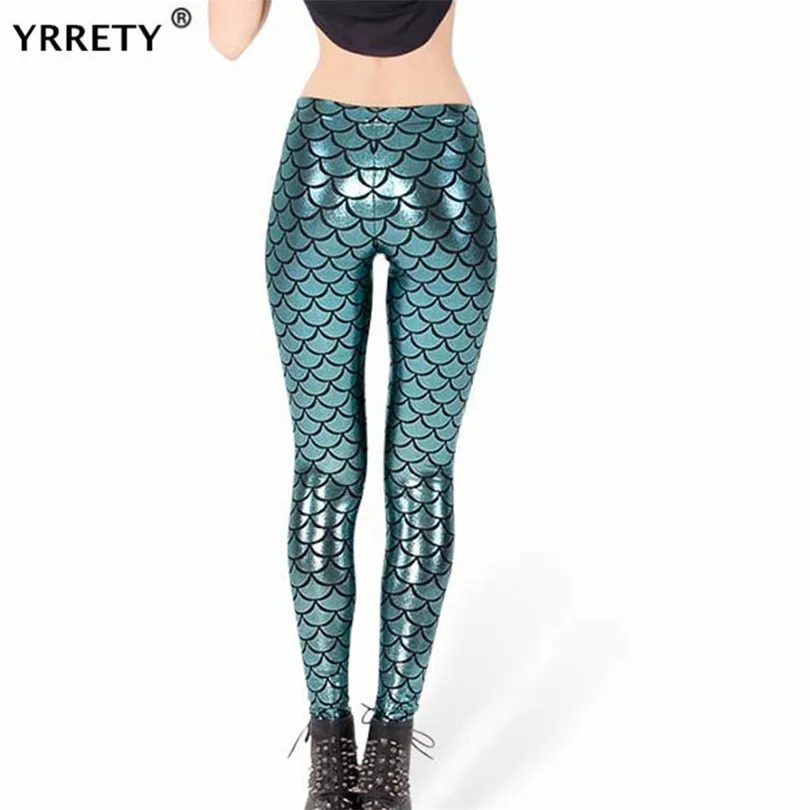 Женские леггинсы YRRETY в виде рыбьей чешуи, черные, молочного цвета, с цифровым принтом русалки, из спандекса, красочные штаны до щиколотки для фитнеса и бега