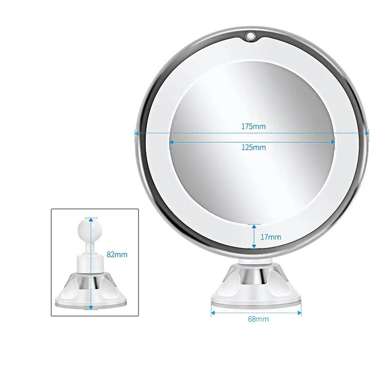 Зеркало светодиодный макияжа со светодиодной подсветильник кой, инструменты для ухода за кожей, складная присоска с белым 10-кратным увеличением, с питанием от батареи